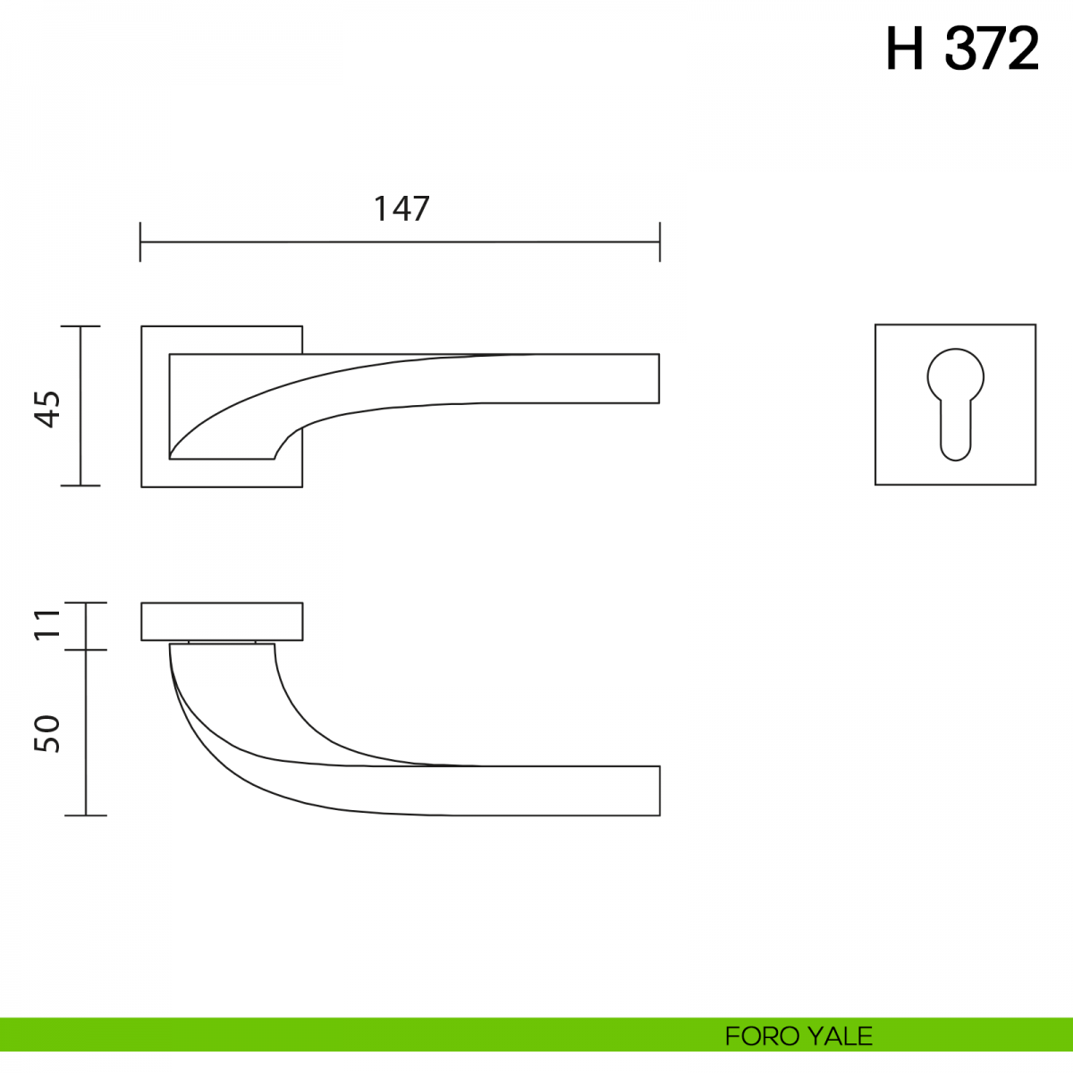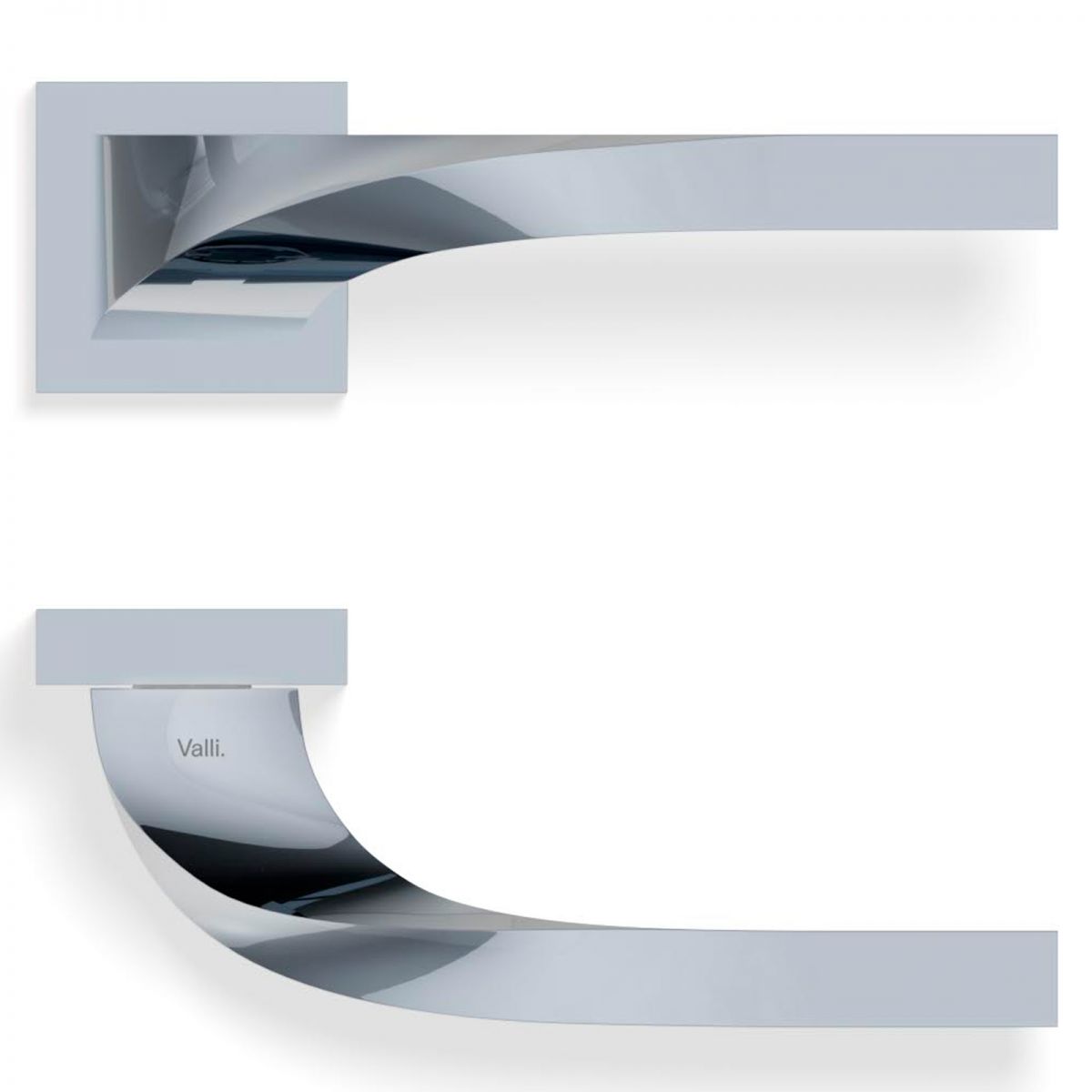 Maniglia per porta interna H 372 Valli collezione Fusital con rosetta e bocchetta quadrata. Design by Eri Goshen.