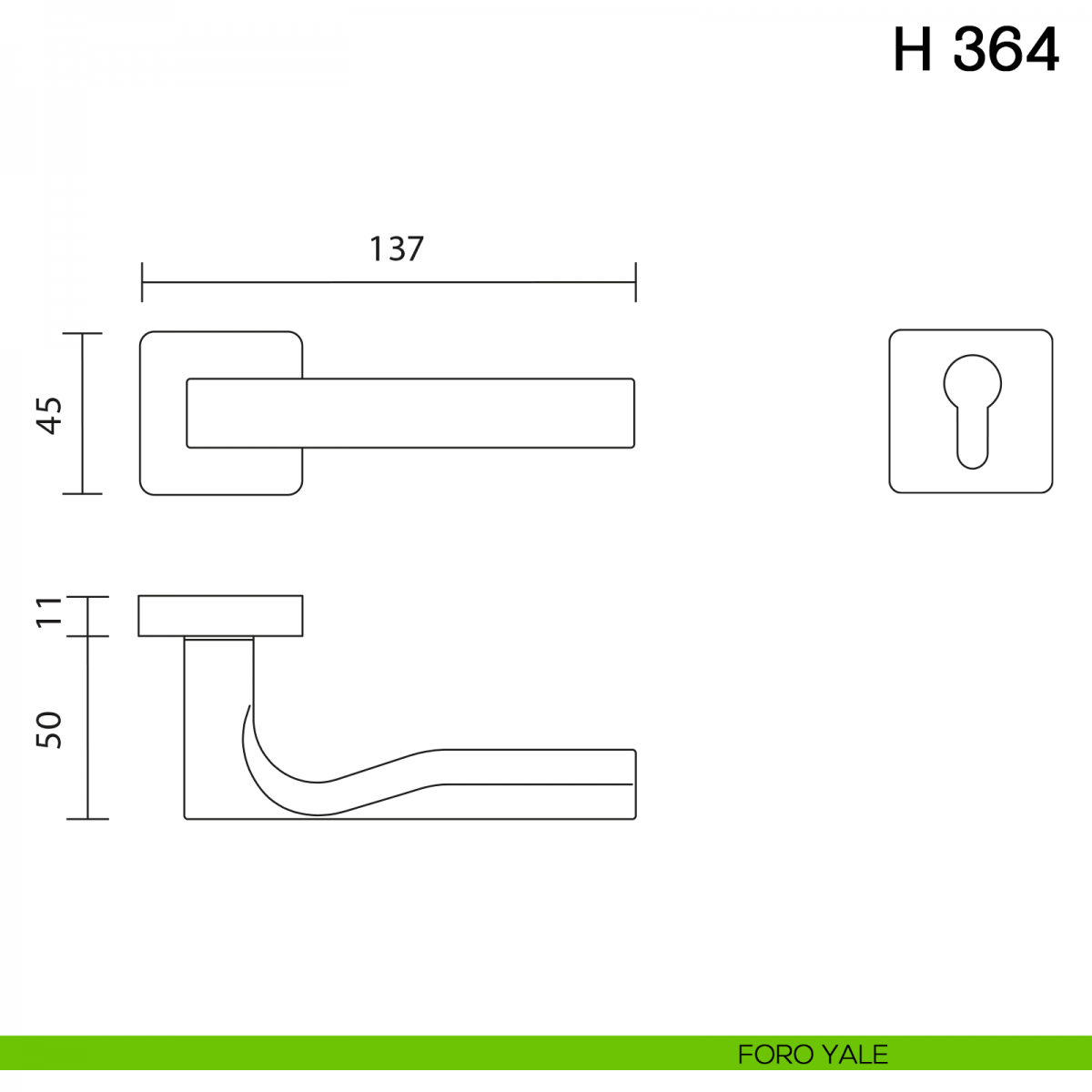 Maniglia per porta interna H 364 Valli collezione Fusital con rosetta e bocchetta quadrata. Design by Mario Bellini.