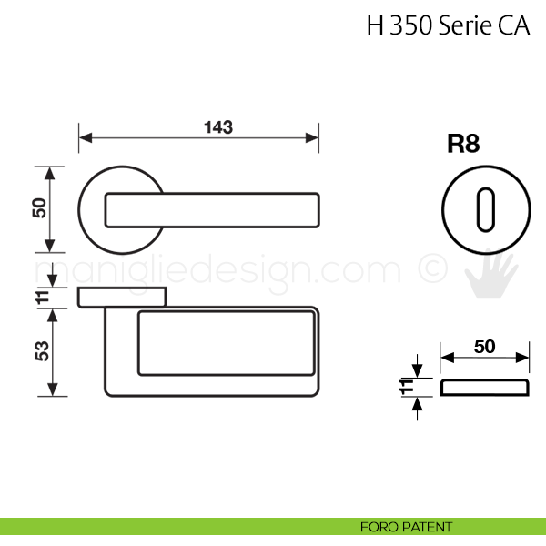 Cerri& Associati progettano una nuova serie di maniglie di design, che porta il nome di CA Duemiladue. La serie H 350 CA appartiene alla linea di maniglie in ottone. La maniglia per interni rappresenta l'eccellenza di una ricerca finalizzata alle più esclusive e attuali espressività del design mirato all'arredo. La maniglia, di assoluta funzionalità e di straordinario impatto formale, si distingue per la modellazione raffinata e plastica che caratterizza ogni singolo modello della serie con il sapiente e armonioso equilibrio delle linee rette e delle proporzioni perfette. Determinante anche la qualità materica, risolta con l'impiego dell'ottone, del cromo e cromo satinato.