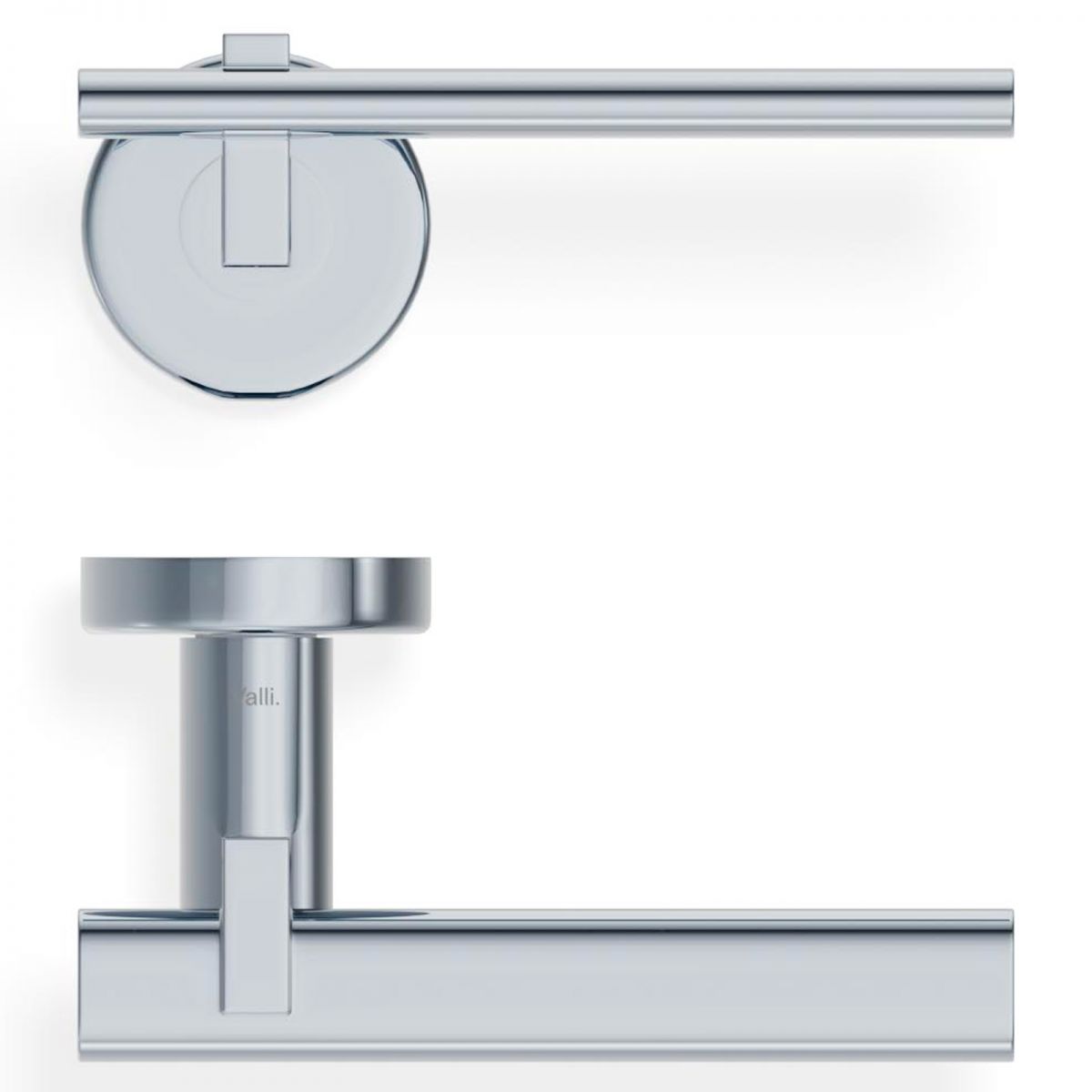 Maniglia per porta interna H 335 Valli collezione Fusital con rosetta e bocchetta tonda. Design by Richard Meier.