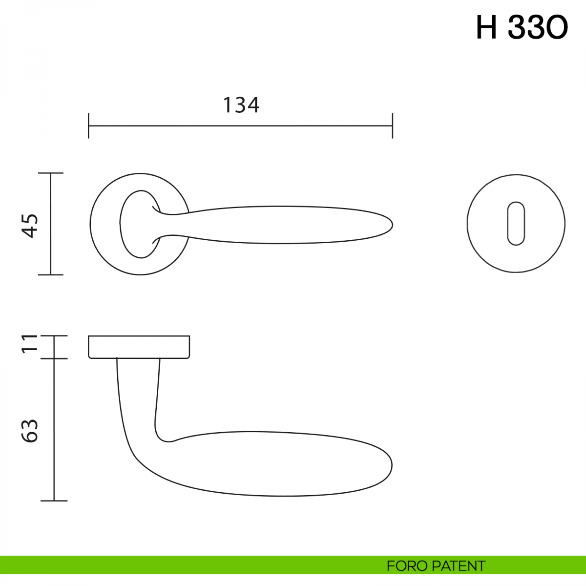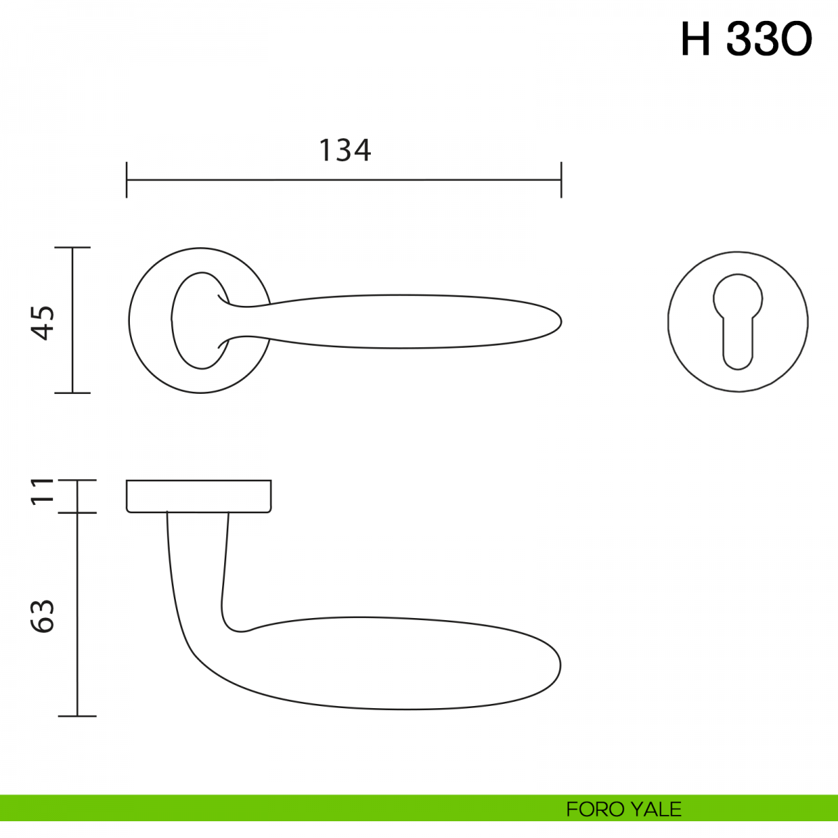 Maniglia per finestra martellina DK H 330 Valli collezione Fusital.