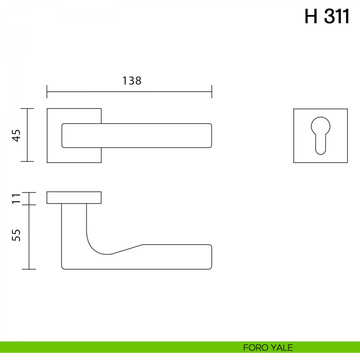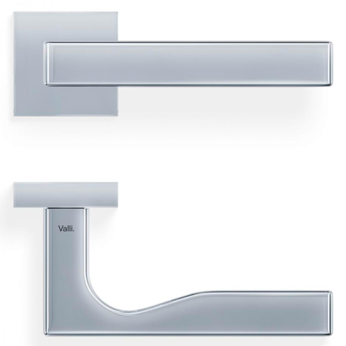 Maniglia per porta interna H 311 Valli collezione Fusital con rosetta e bocchetta quadrata. Design by Mario Bellini.