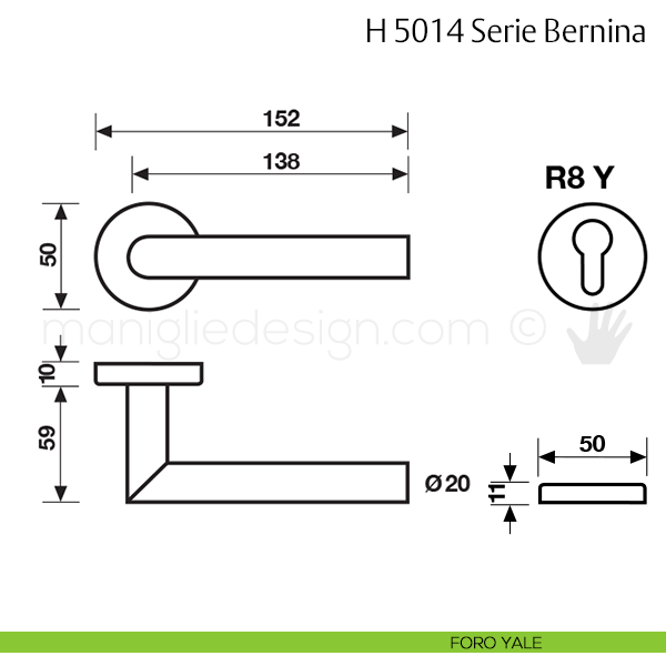 Il design della maniglia in acciaio H 5014 Bernina Fusital