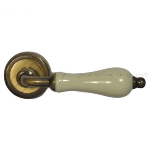 Maniglia per porta porcellana champagne ottone bronzato graffiato Samoha Nestori con rosetta e bocchetta tonda.