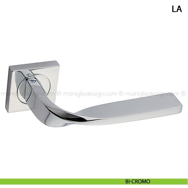 Il Designer Fabrizio Cester crea dalla flessione di un semplice nastro di gomma una forma a spirale e riesce a mantenere la sua morbidezza con il metallo. La maniglia per porta interna La. La è una maniglia in ottone pressofuso nelle finiture cromo lucido, cromato satinato e Bicolore.