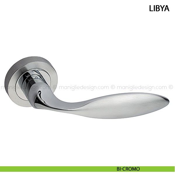 Un nome che evoca suggestioni lontane e sottolinea una caratteristica metafisica dello spazio, l'assenza di un limite, il suo essere inafferrabile. Per contrasto, ecco un'impugnatura rigonfia, che pare uscire dai meandri del tempo come utensile familiare, comune, amico. Libya è una maniglia in ottone pressofuso nelle finiture cromo lucido e Bicolore.