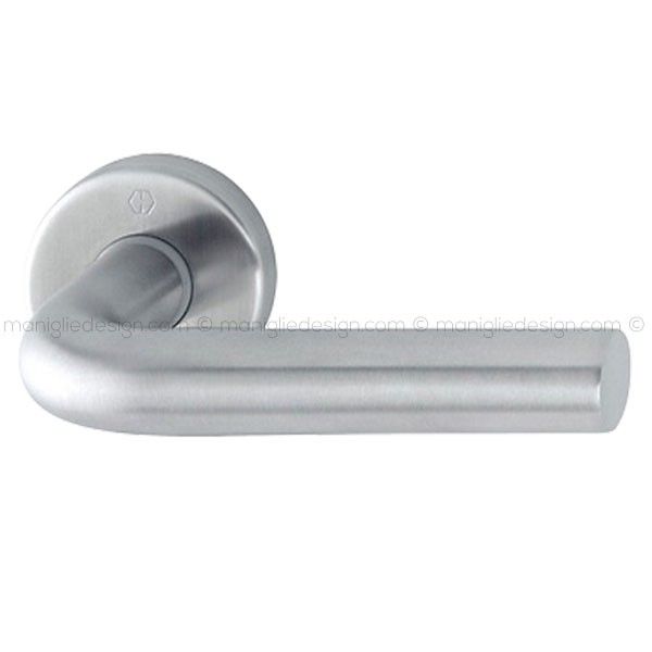 Maniglia per porta Bonn Hoppe in acciaio inox con rosetta e bocchetta tonda.