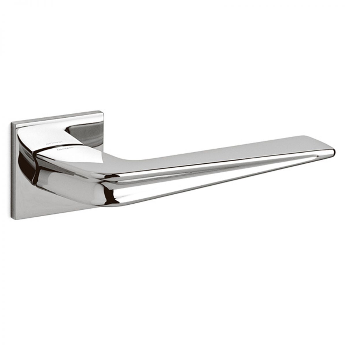 Maniglia per porta interna Chevron Olivari con rosetta e bocchetta quadrata bassa. Design by Zaha Hadid.