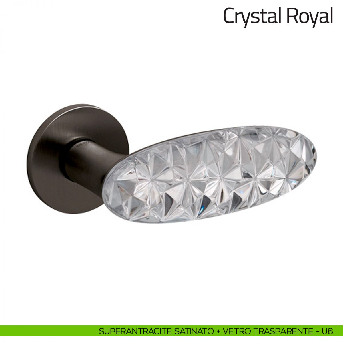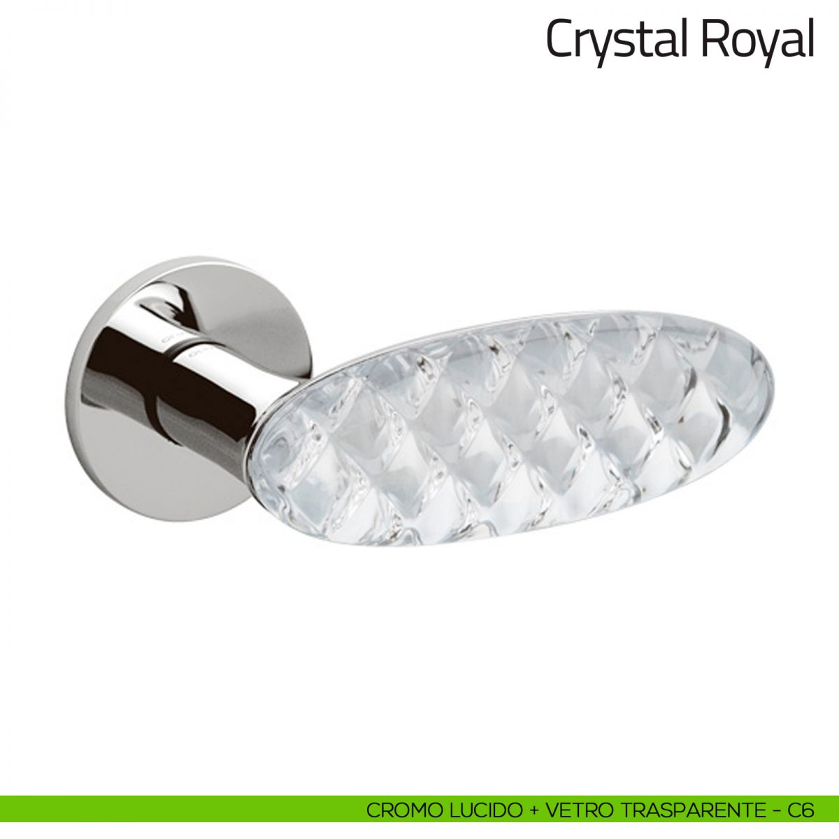 Maniglia per porta interna Crystal Royal Olivari in vetro con rosetta e bocchetta tonda.
