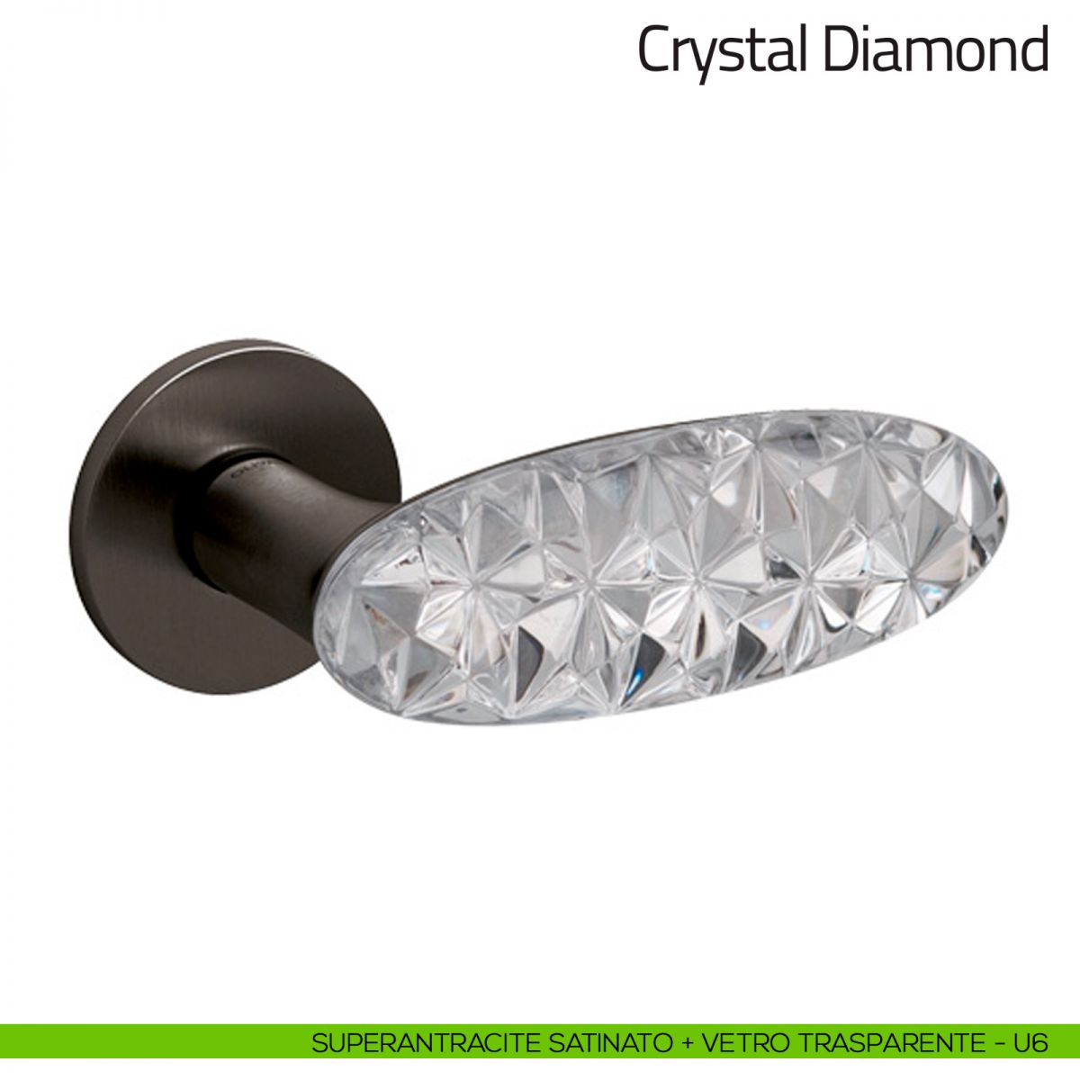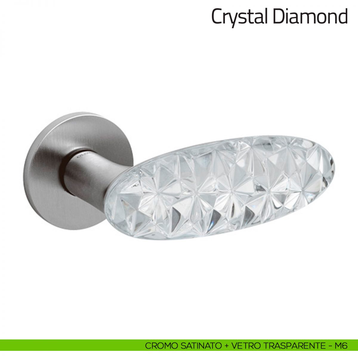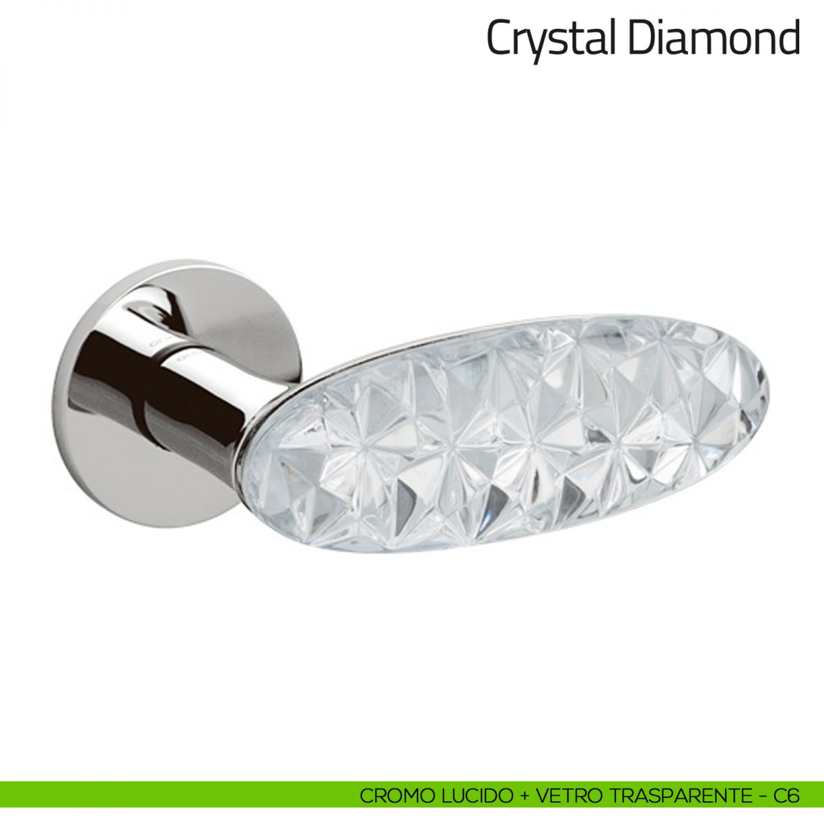 Maniglia per porta interna Crystal Diamond Olivari in vetro con rosetta e bocchetta tonda.