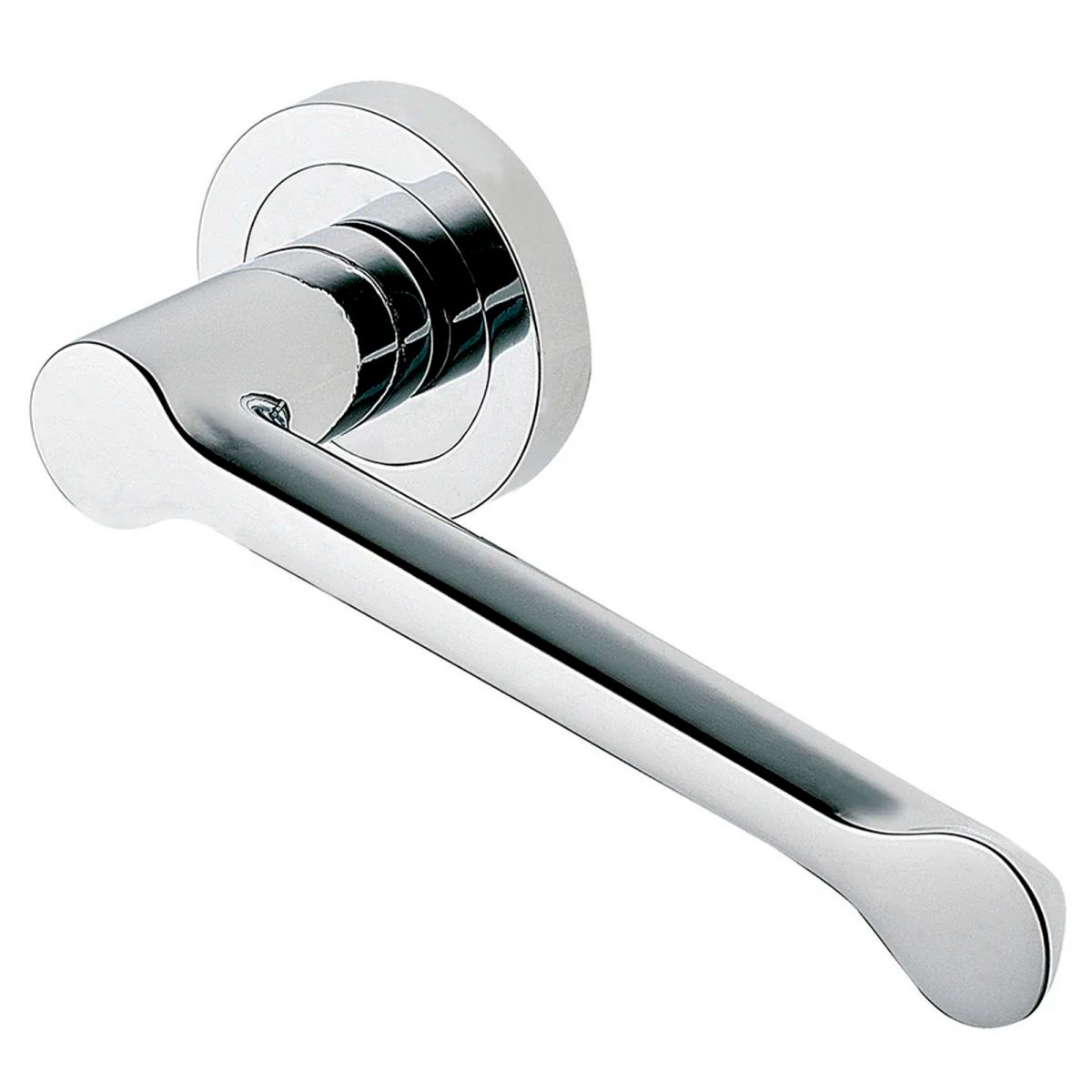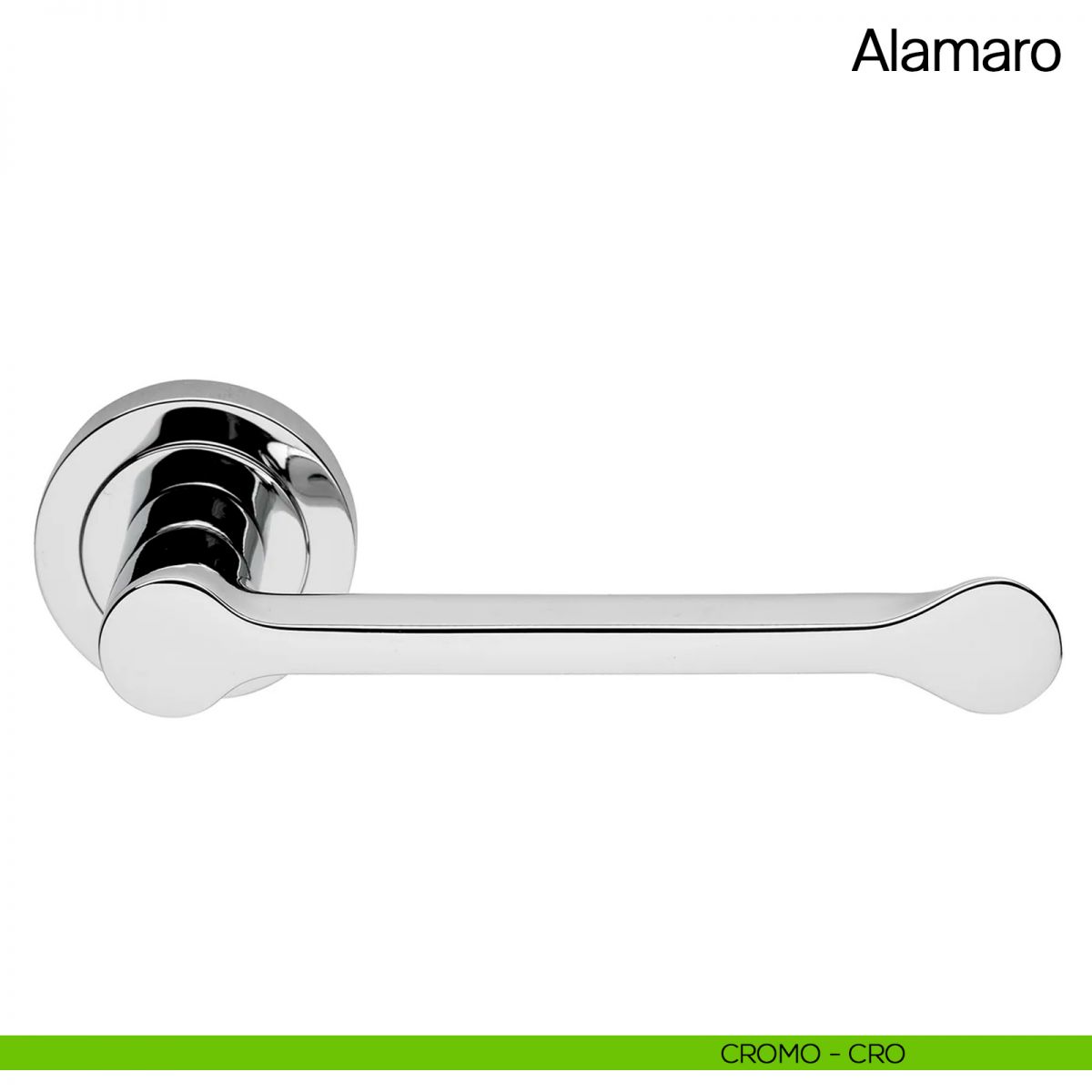 Maniglia per porta Alamaro Manital su rosetta tonda. Design by Mario Mazzer.