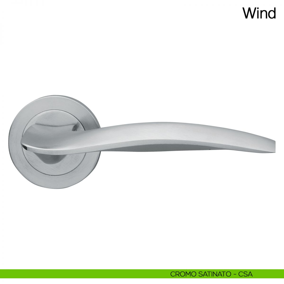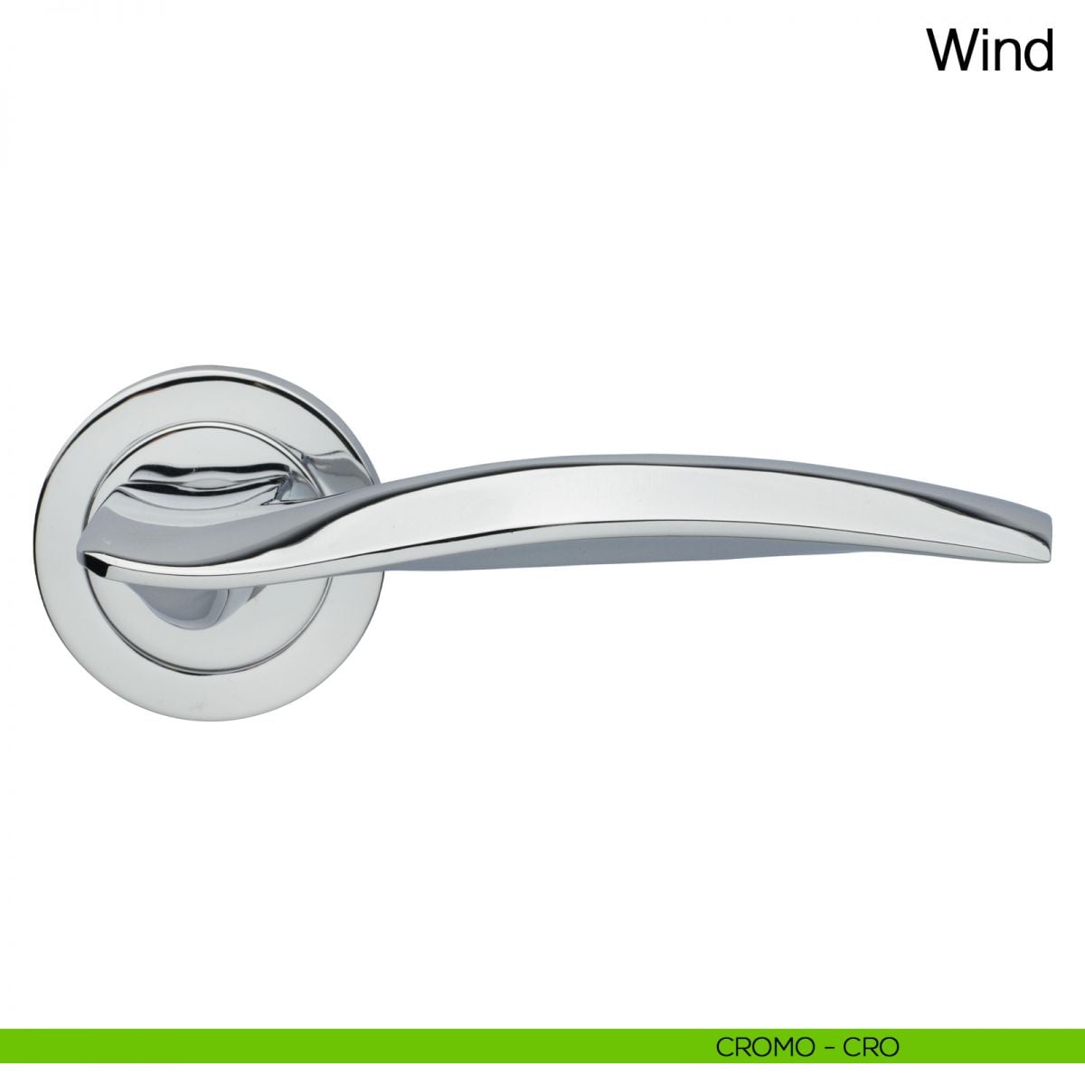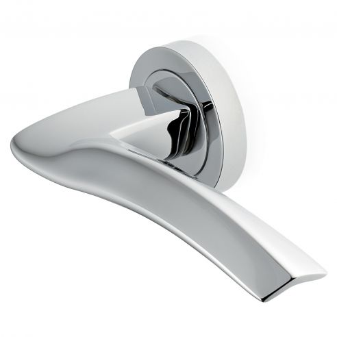Maniglia per porta Wind Manital su rosetta tonda. Design by Maurizio Giordano e Roberto Grossi.