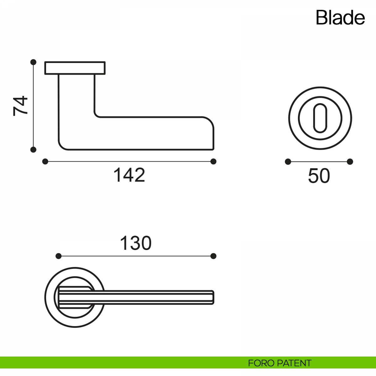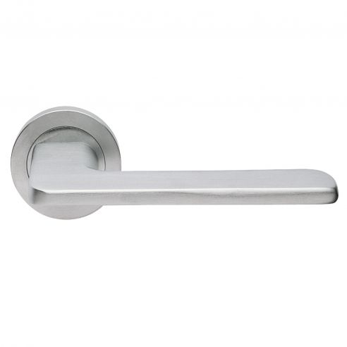 Maniglia per porta Blade Manital su rosetta tonda. Design by Maurizio Giordano e Roberto Grossi.