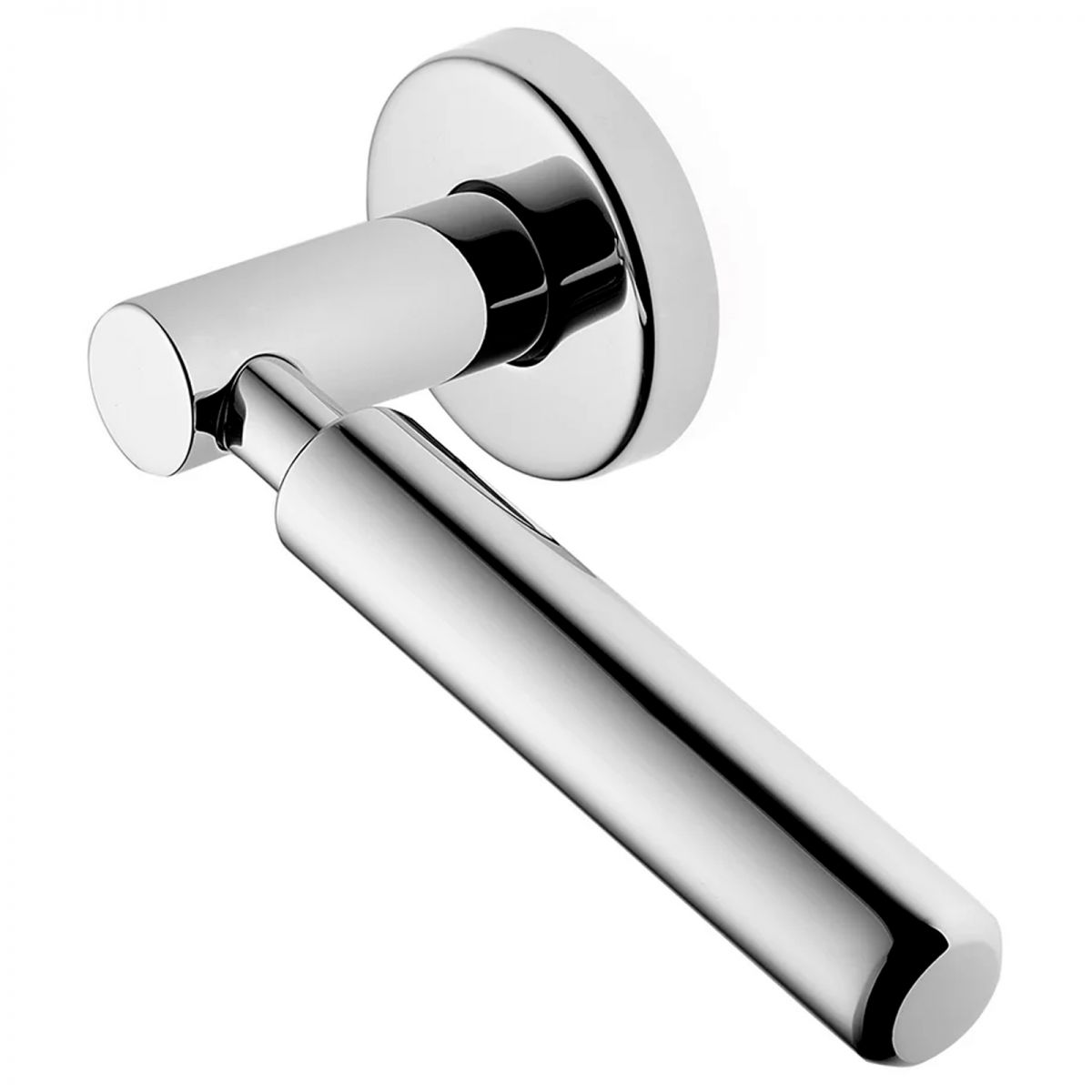 Maniglia per porta Amleto Manital su rosetta tonda. Design by Sottsass Associati.