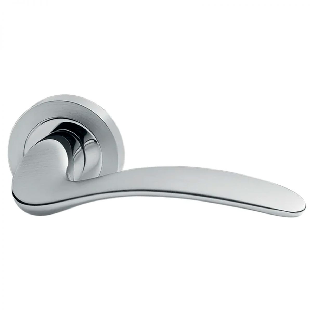 Maniglia per porta Salina Manital su rosetta tonda. Design by Maurizio Giordano e Roberto Grossi.