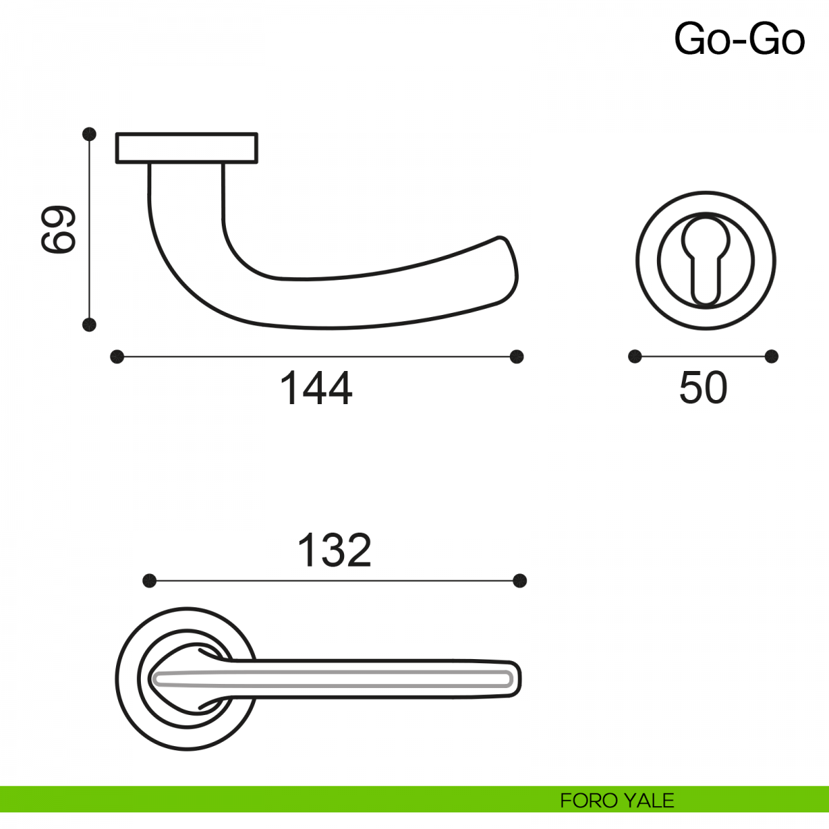 Maniglia per porta Go-Go Manital su rosetta tonda. Design by Studio Manital.