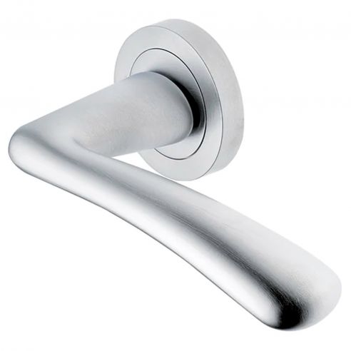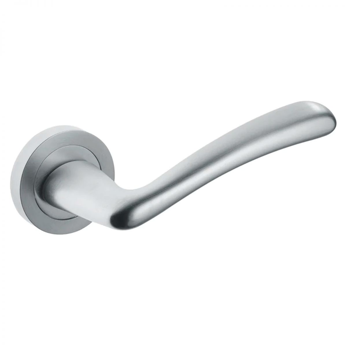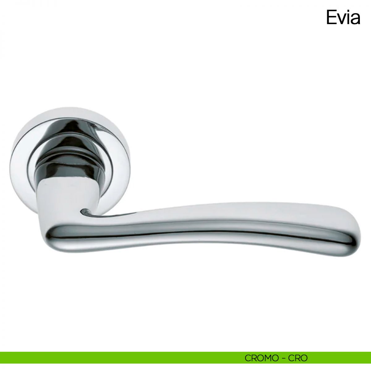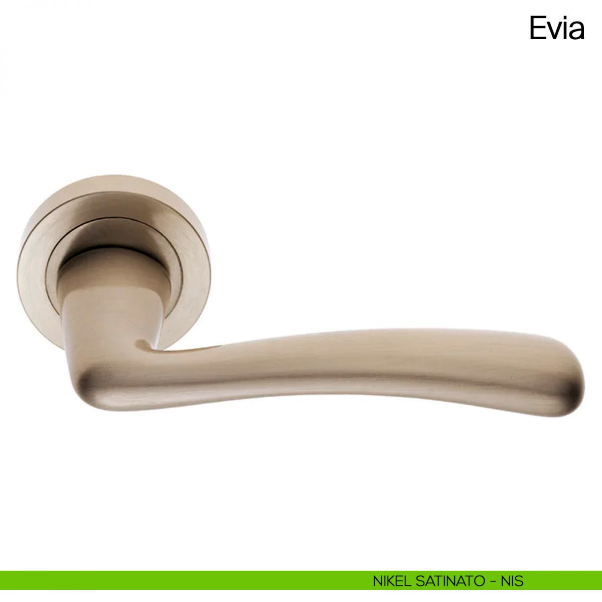 Maniglia per porta Evia Manital su rosetta tonda. Design by Pedrizzetti & Associati.