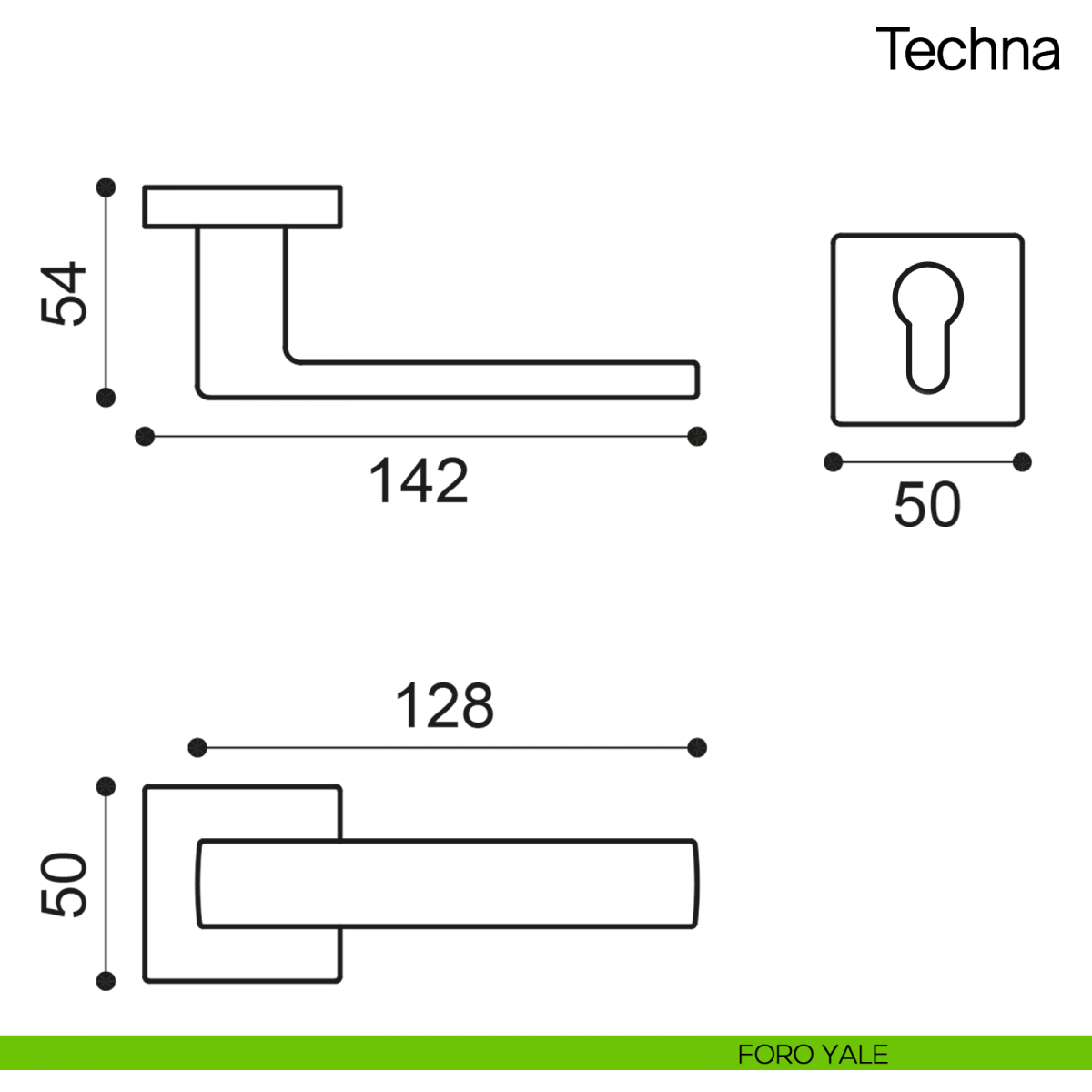 Maniglia per porta Techna Manital su rosetta quadrata. Design by Studio Manital.