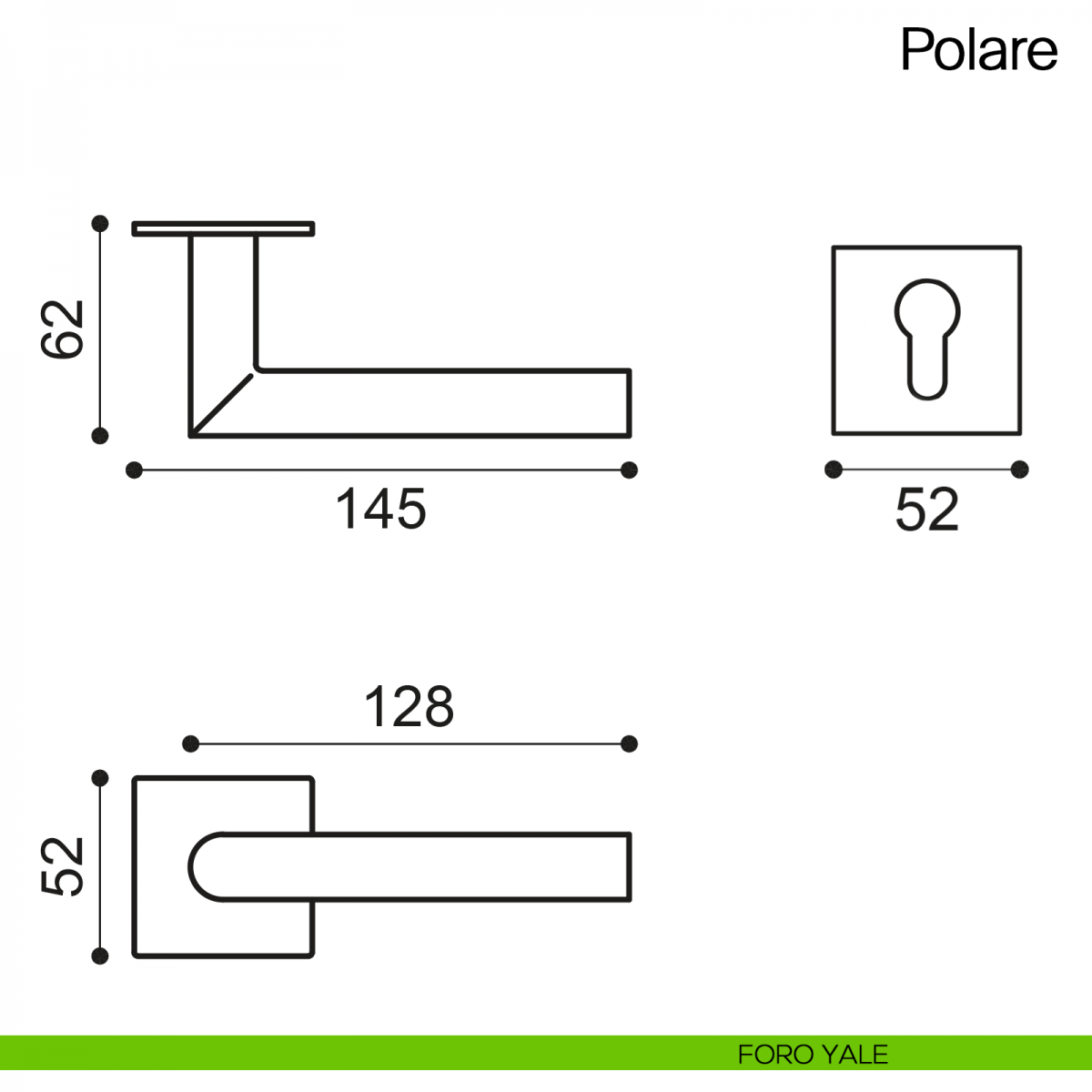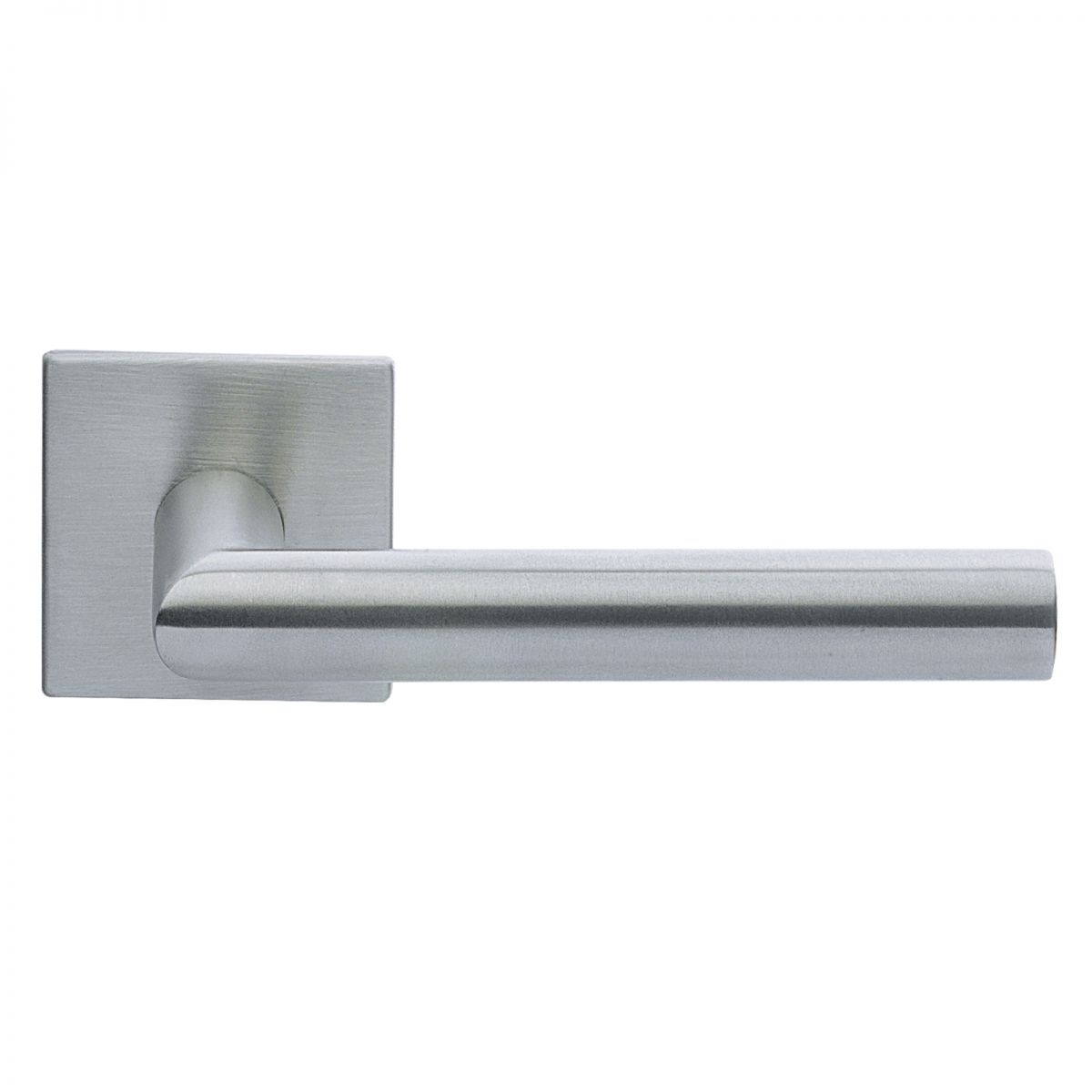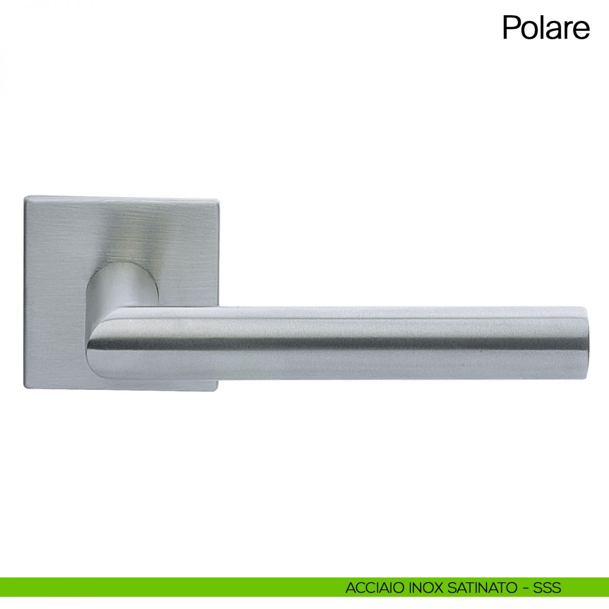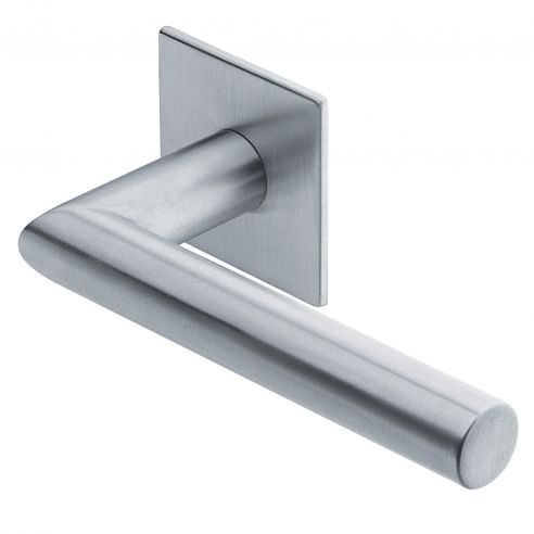 Maniglia per porta Polare Manital in acciaio su rosetta quadrata. Design by Studio Manital.