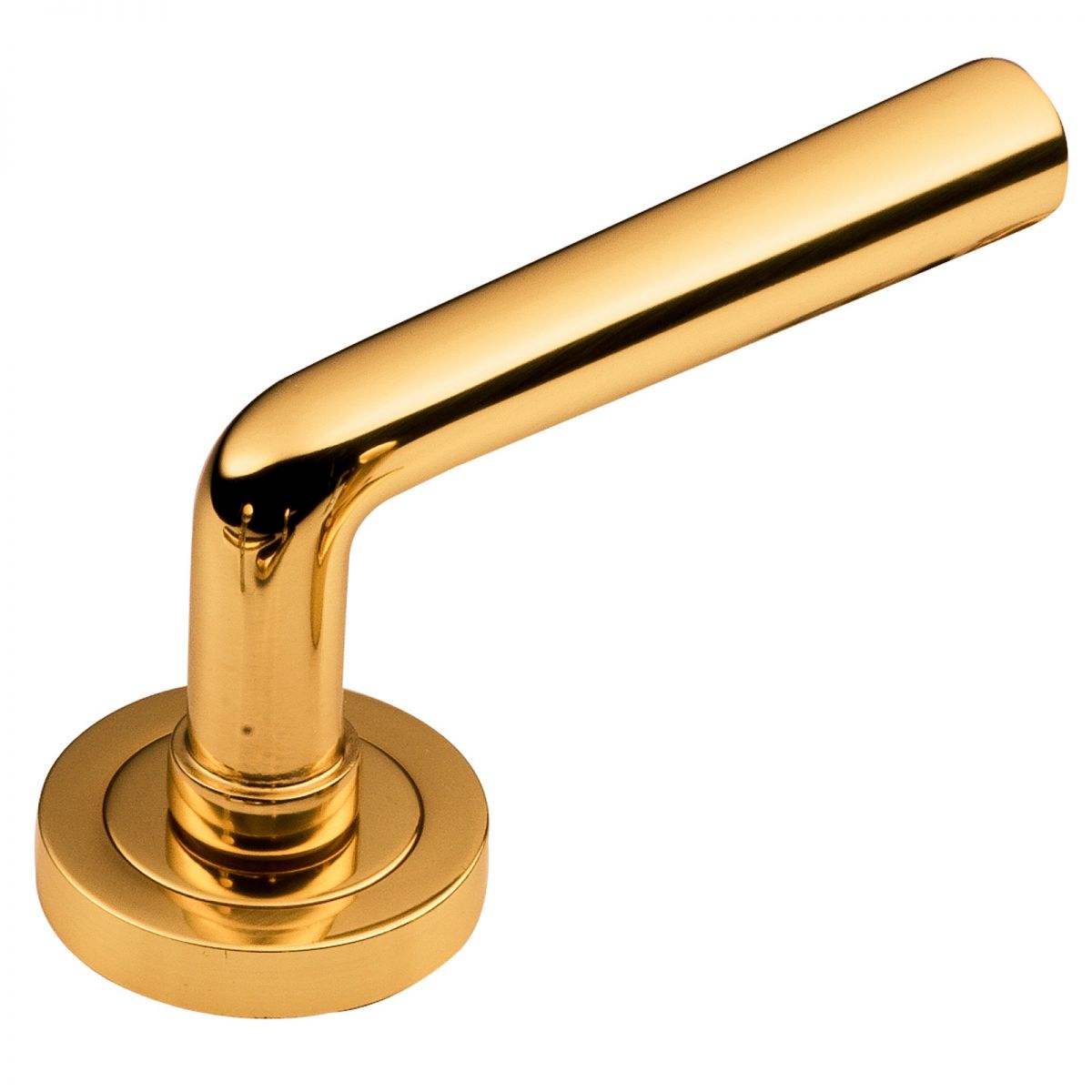 Maniglia per porta Idro Manital su rosetta tonda. Design by Studio Manital.