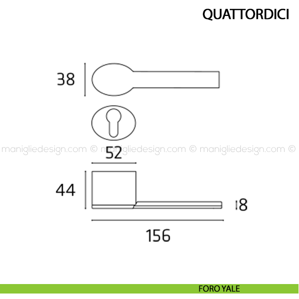 Maniglia per porta interna Quattordici Comit con rosetta e bocchetta tonda foro patent.