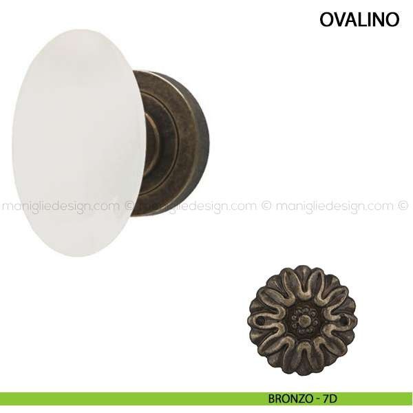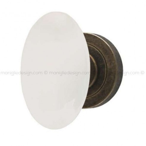 Pomolo per porta interna Ovalino Comit porcellana bianca con rosetta e bocchetta tonda.
