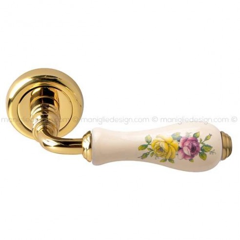 Maniglia per porta interna Ottocento Comit porcellana avorio fiore orizzontale con rosetta e bocchetta tonda.