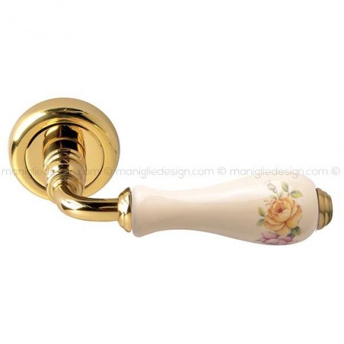 Maniglia per porta interna Ottocento Comit porcellana avorio fiore verticale con rosetta e bocchetta tonda.