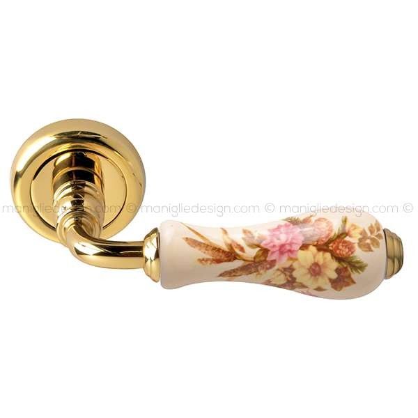 Maniglia per porta interna Ottocento Comit porcellana avorio spiga di grano con rosetta e bocchetta tonda.