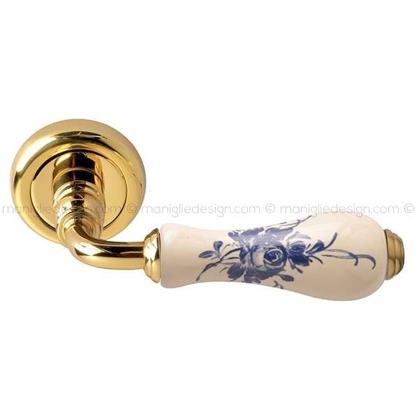 Maniglia per porta interna Ottocento Comit porcellana avorio rosa blu con rosetta e bocchetta tonda.
