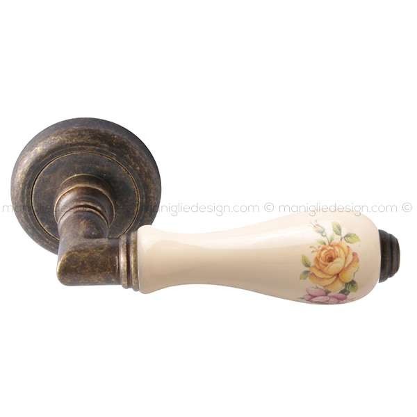 Maniglia per porta interna Barocco Comit porcellana avorio fiore verticale con rosetta e bocchetta tonda.