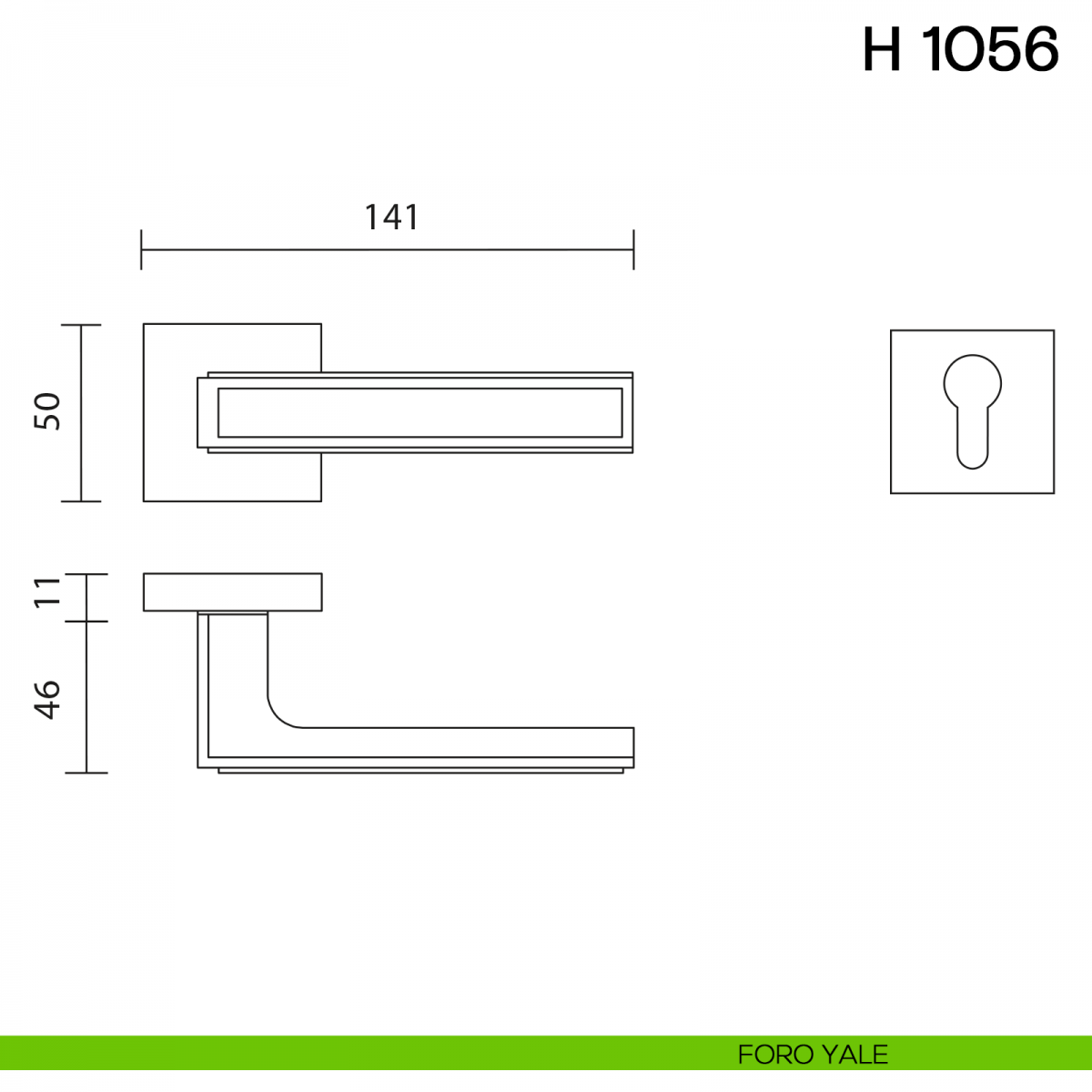 Maniglia per porta interna H 1056 Valli collezione Lab con rosetta e bocchetta quadrata. Design by Valli Workshop.