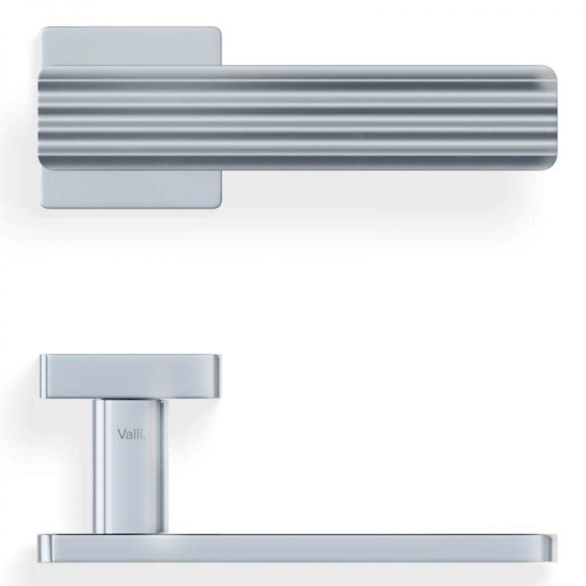 Maniglia per porta interna H 370 Valli collezione Fusital con rosetta e bocchetta quadrata fine. Design by Doriana e Massimiliano Fuksas.