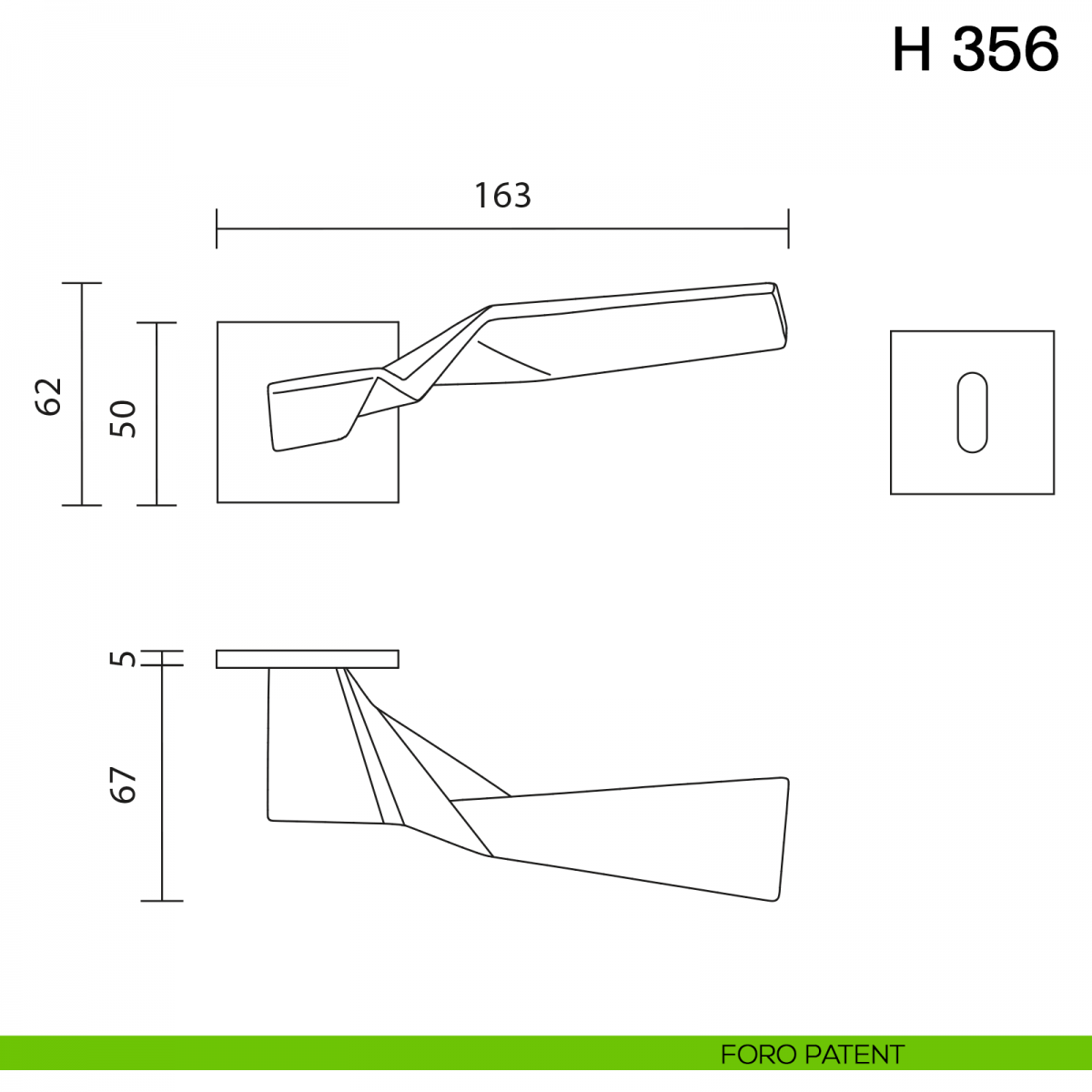 Maniglia per porta interna H 356 Valli collezione Fusital con rosetta e bocchetta quadrata fine. Design by Zaha Hadid.