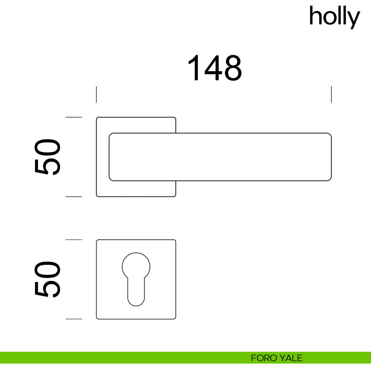 Holly dnd viene offerta con diversi tipi di versione, il foro patent (comunemente chiamato foro chiave), la versione yale (foro cilindro), placca cieca senza foratura (dove la chiusura non è necessaria) e nottolino WC (utilizzato in genere nelle porte dei bagni o stanze da letto). Per un ottimale risultato di installazione è consigliato attenersi alle istruzioni di montaggio di cuoi ogni singola maniglia Holly dnd Martinelli è corredata.
