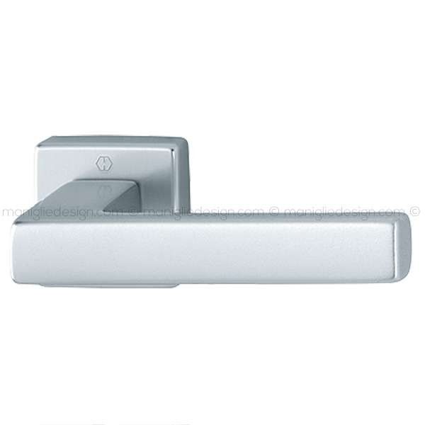 Maniglia per porta Toulon Hoppe alluminio argento con rosetta e bocchetta quadrata foro patent.