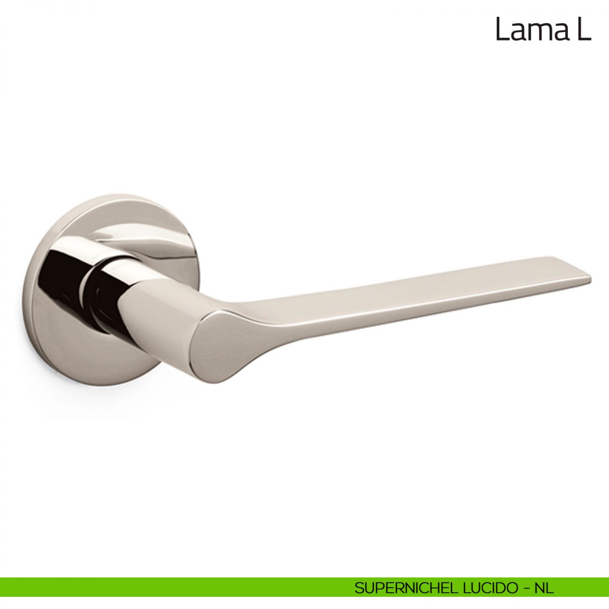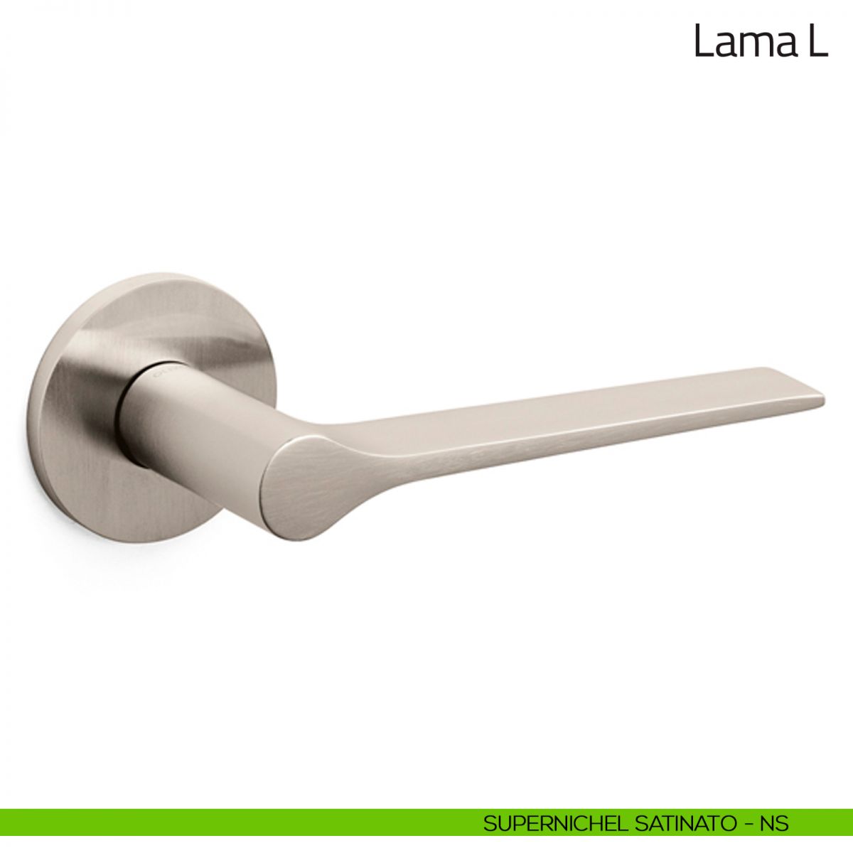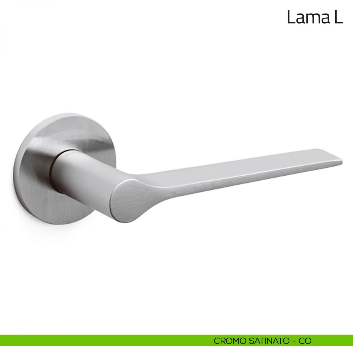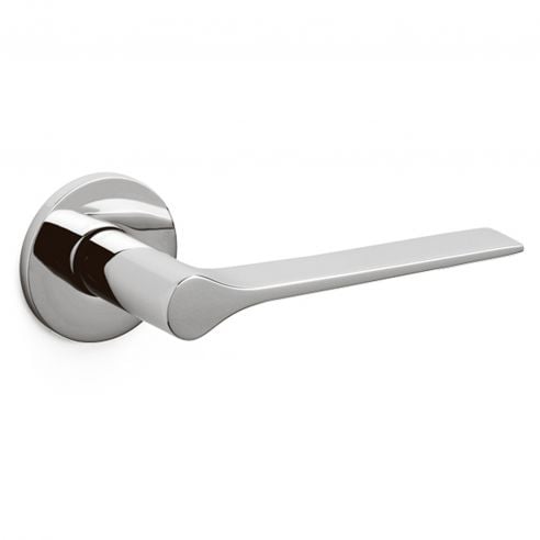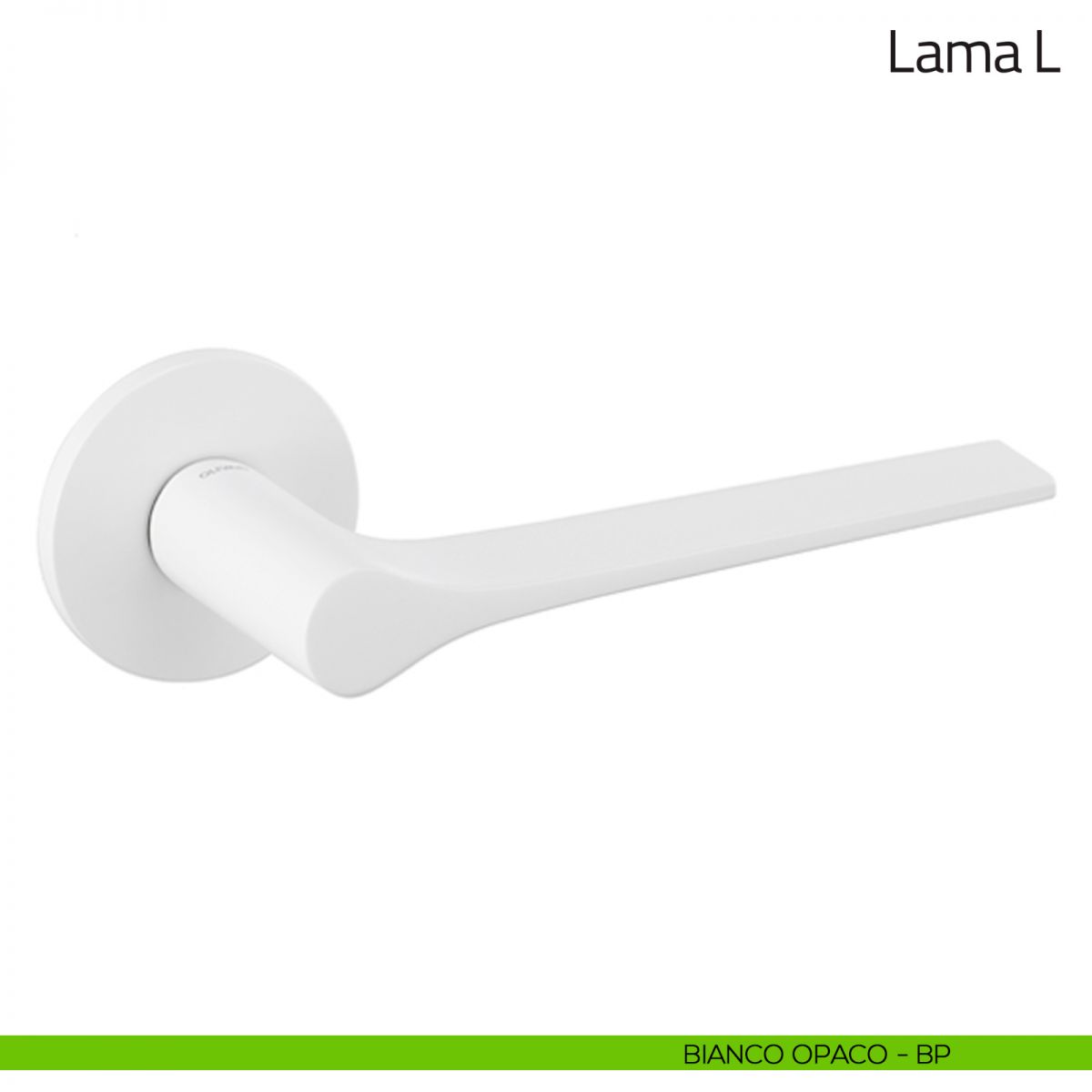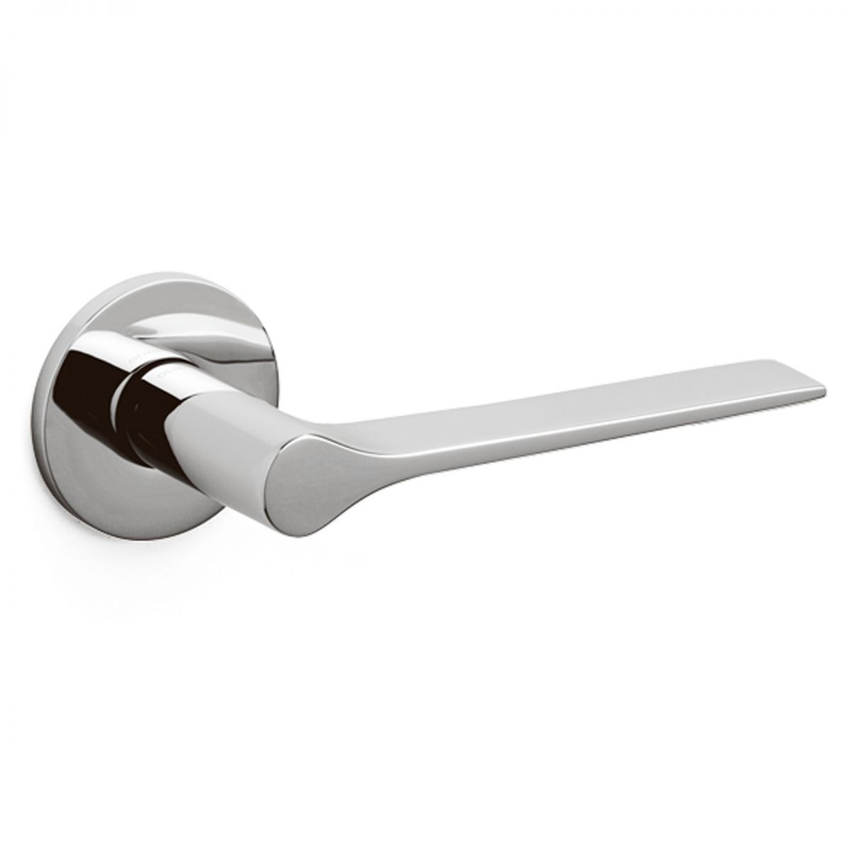 Maniglia per porta interna Lama L Olivari con rosetta e bocchetta tonda bassa. Design by Giò Ponti.