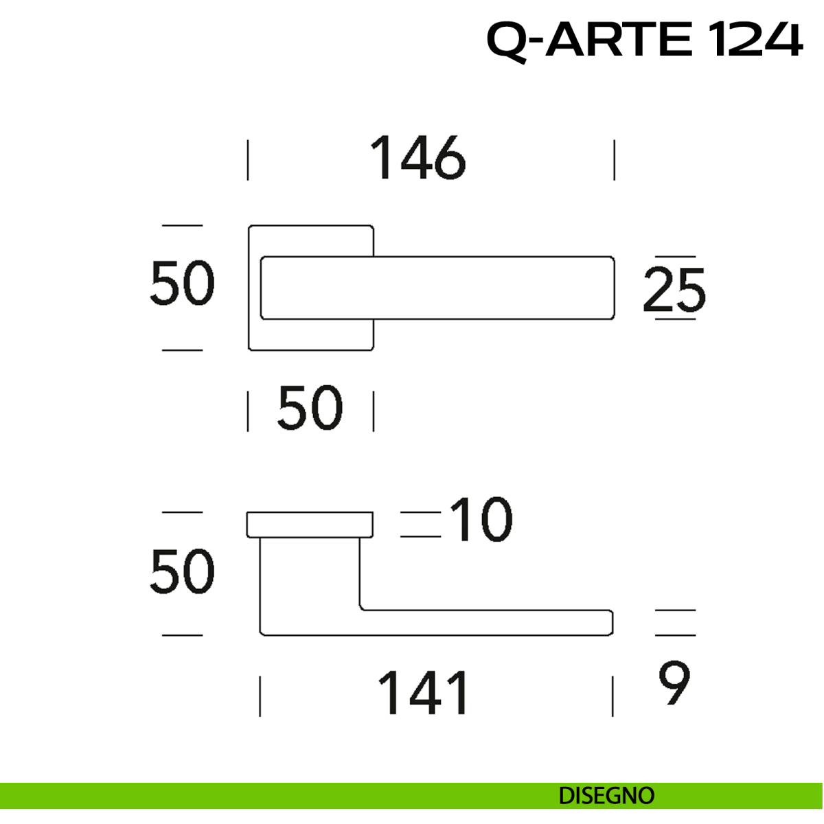 Maniglia per porta interna Q-Arte 124 Reguitti con rosetta quadrata. Design by Studio Reguitti.
