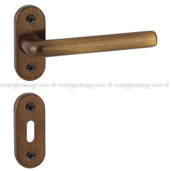 Maniglia per porta interna 26 Collo Basso Reguitti con rosetta e bocchetta ovale e viti a vista. Design by Studio Reguitti.
