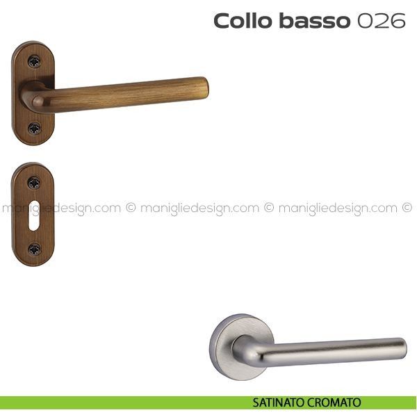 Maniglia per porta interna 26 Collo Basso Reguitti con rosetta e bocchetta tonda.