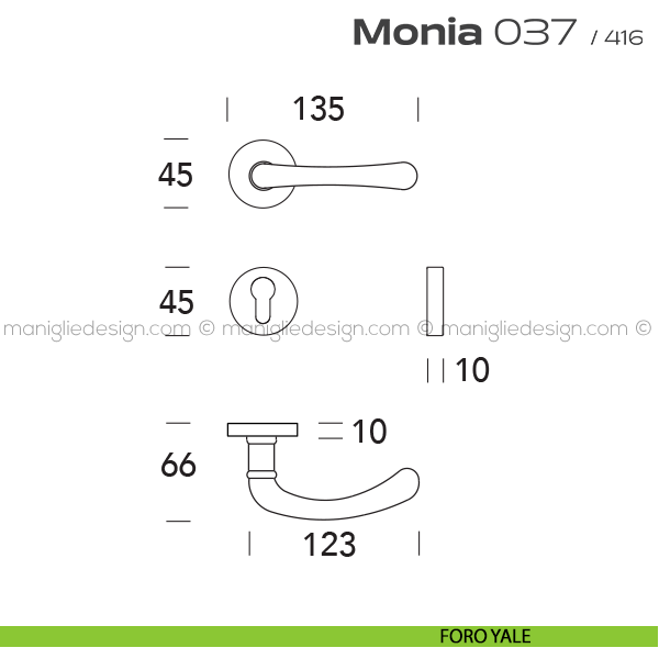 Lo studio di progettazione interno all'azienda Reguitti progetta una nuova serie di maniglie per interni chiamata 37 Monia Reguitti che grazia alla sua armoniosa silhouette arrotondata, si inserisce in modo coerente negli ambienti più differenti. Monia è ideale per assecondare un gusto classico, sobrio e tradizionale ma adatta anche a creare un ironico contrasto in ambienti minimali.