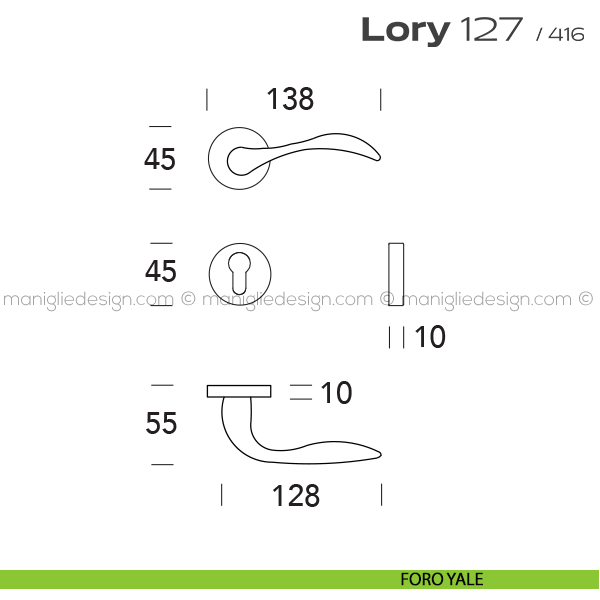Maniglia per porta interna 127 Lory Reguitti con rosetta e bocchetta tonda. Design by Studio Reguitti.