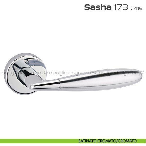 Maniglia per porta interna 173 Sasha Reguitti con rosetta e bocchetta tonda.