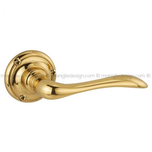 Maniglia per porta interna 049 Tosca Reguitti con viti a vista, rosetta e bocchetta tonda.
