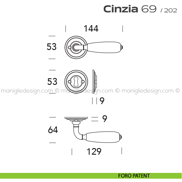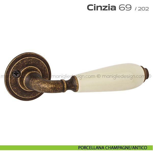 Lo studio di progettazione interno all'azienda Reguitti progetta una nuova serie di maniglie per interni chiamata 069 Cinzia Reguitti. La linea Vintage è la collezione di maniglie classiche Reguitti. Cinzia è la maniglia in ottone e porcellana che combina pregiate finiture e finissimi colori. Pregiati inserti richiamano lo stile dei primi '900, ideali per arredare gli ambienti con uno spiccato gusto classico.