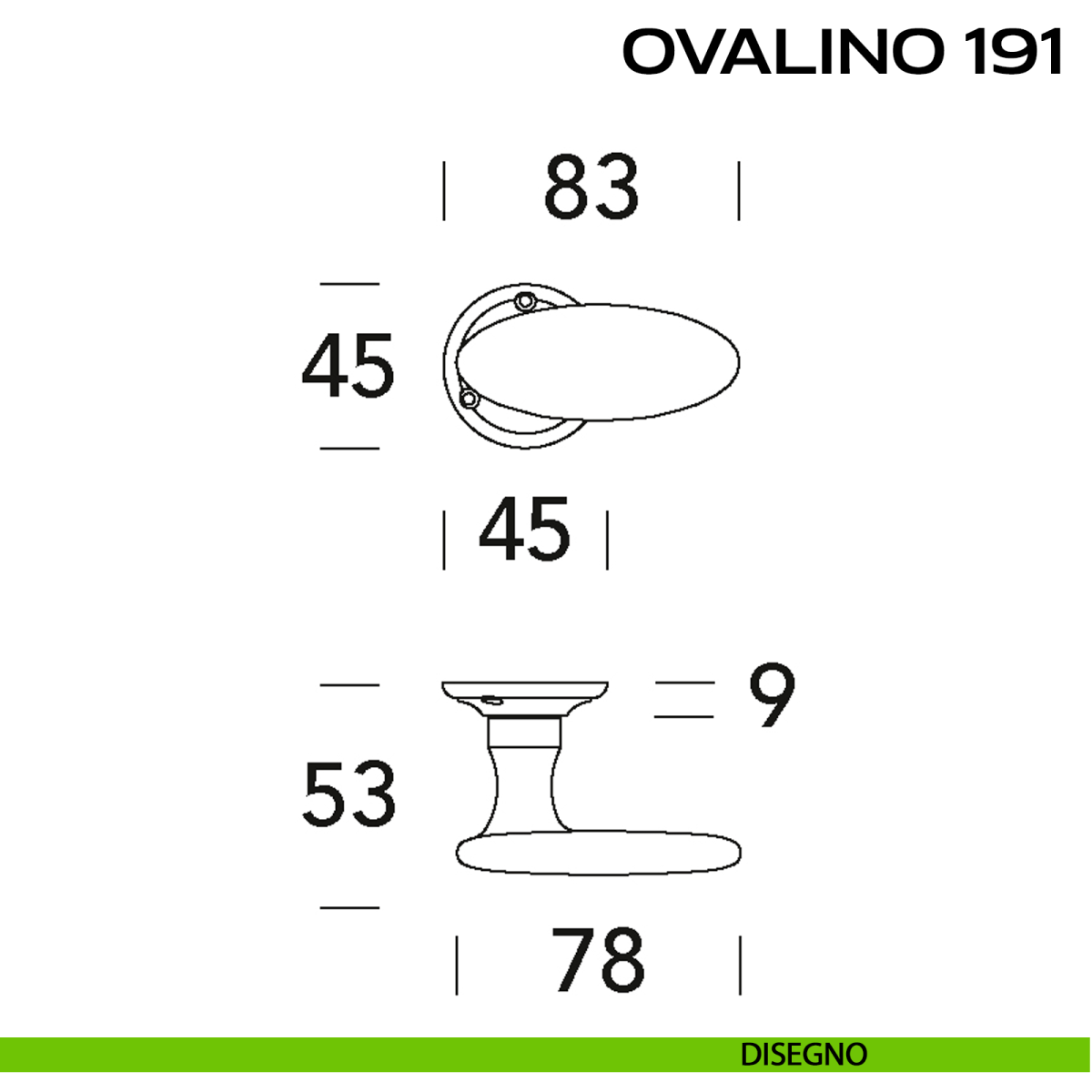 Pomolo ovale girevole per porta Ovalino T 190 Reguitti con rosetta tonda.