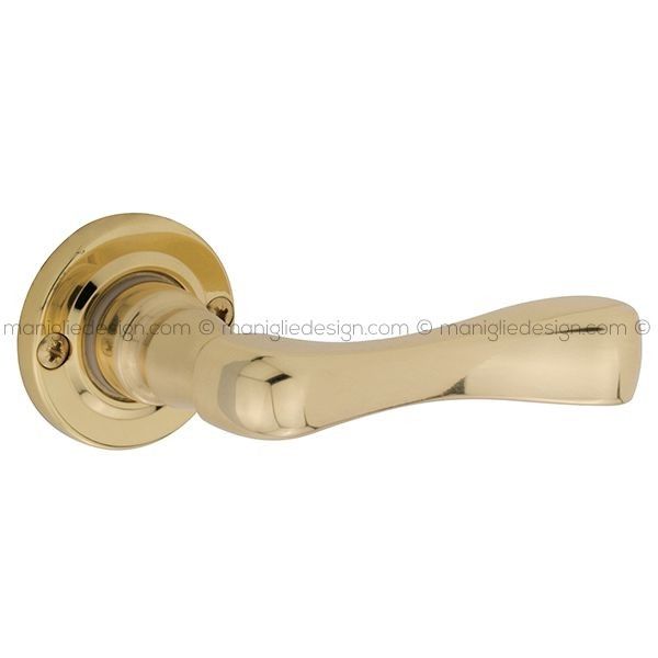 Maniglia per porta interna T33 Mignon Reguitti con viti a vista, rosetta e bocchetta tonda.