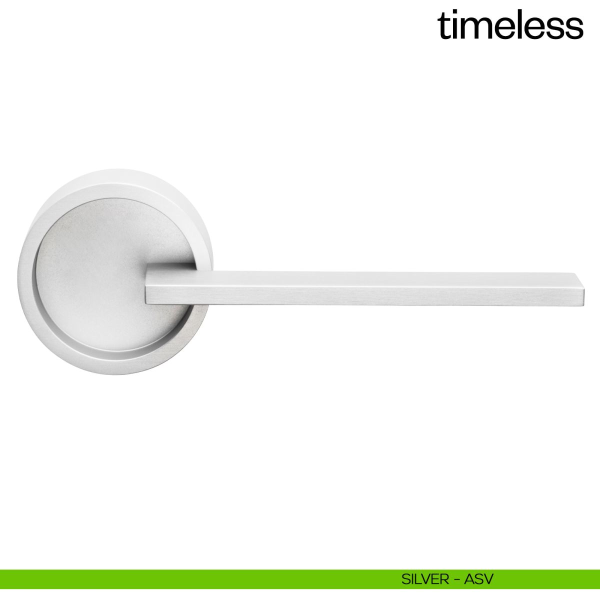 Maniglia per porta interna Timeless dnd Handles con rosetta e bocchetta tonda fine.