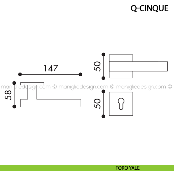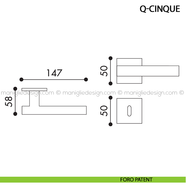 Maniglia per porta Q-Cinque Arieni su rosetta quadrata. Design by Arieni Maniglie.