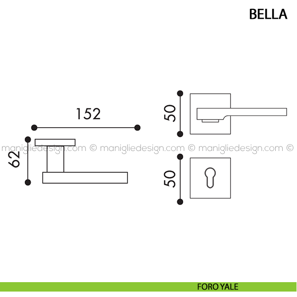 Maniglia per porta Bella Arieni su rosetta quadrata. Design by Arieni Maniglie.